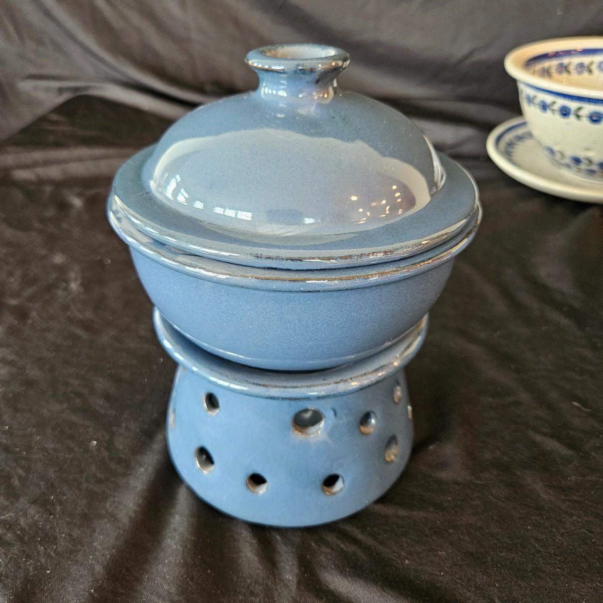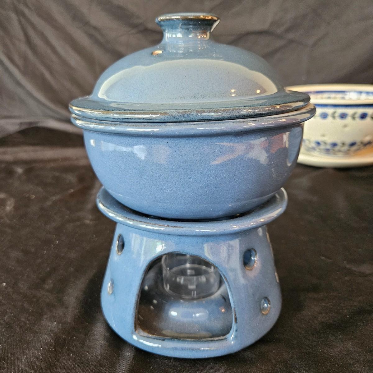 Blue Themed Kitchen Pottery Pieces: Apple Baker, Berry Bowl, & More (K-DW)