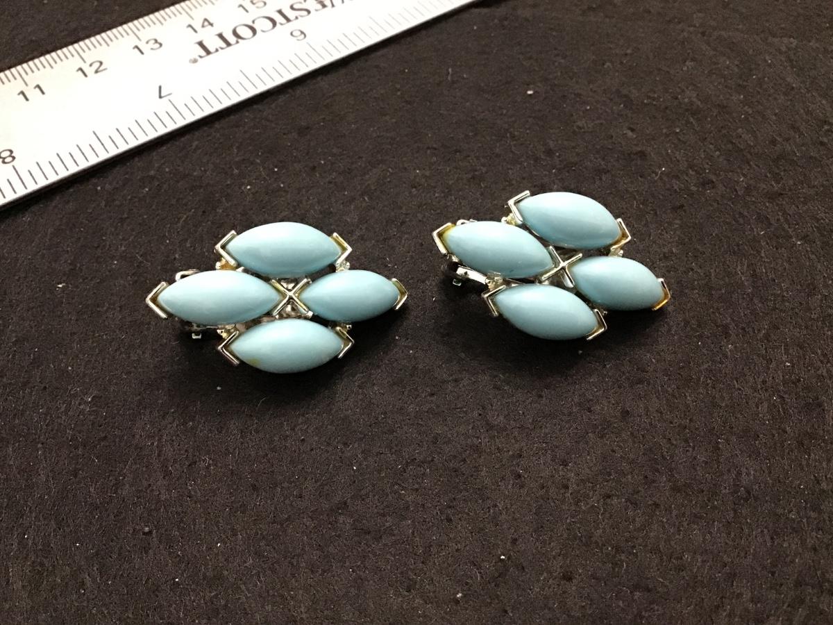 Blue Thermoset Clip on Earrings