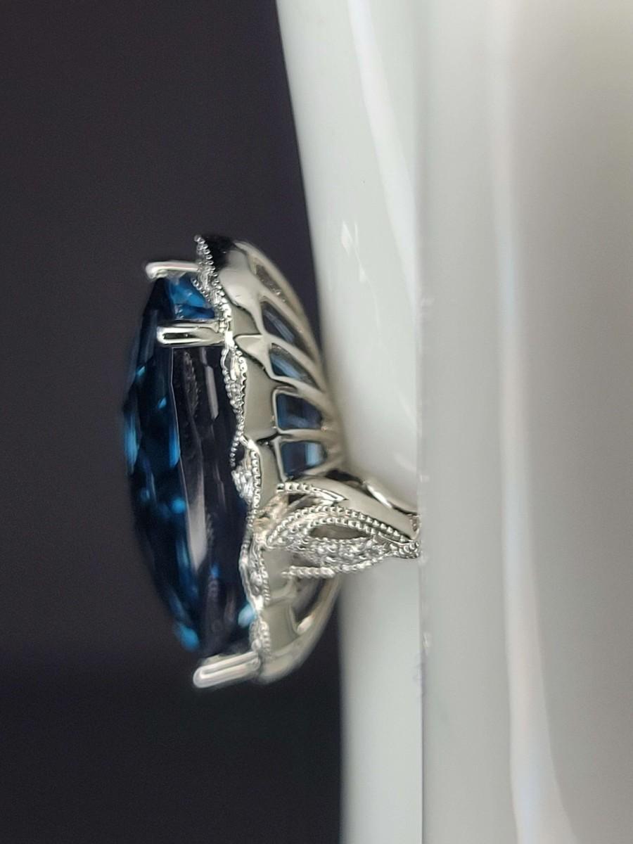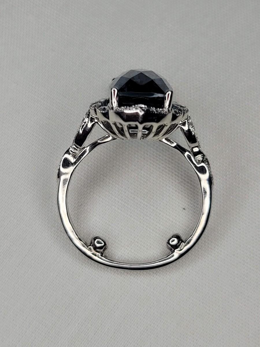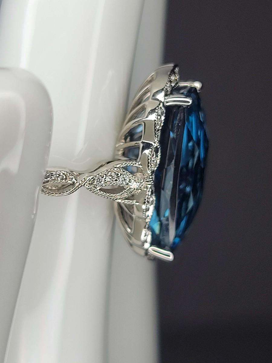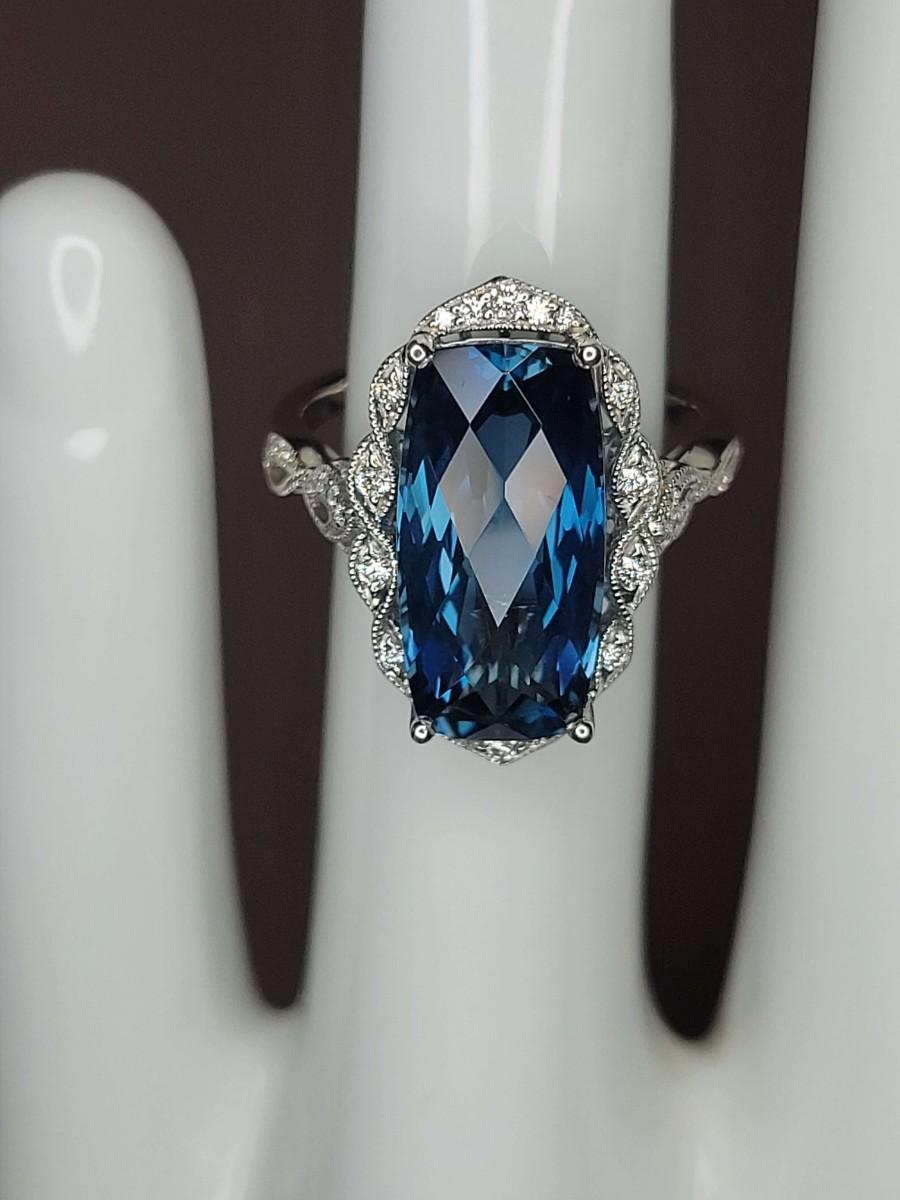 14k white gold with 6.5 Ct. cushion cut blue sapphire and 0.15 Tw. round diamonds