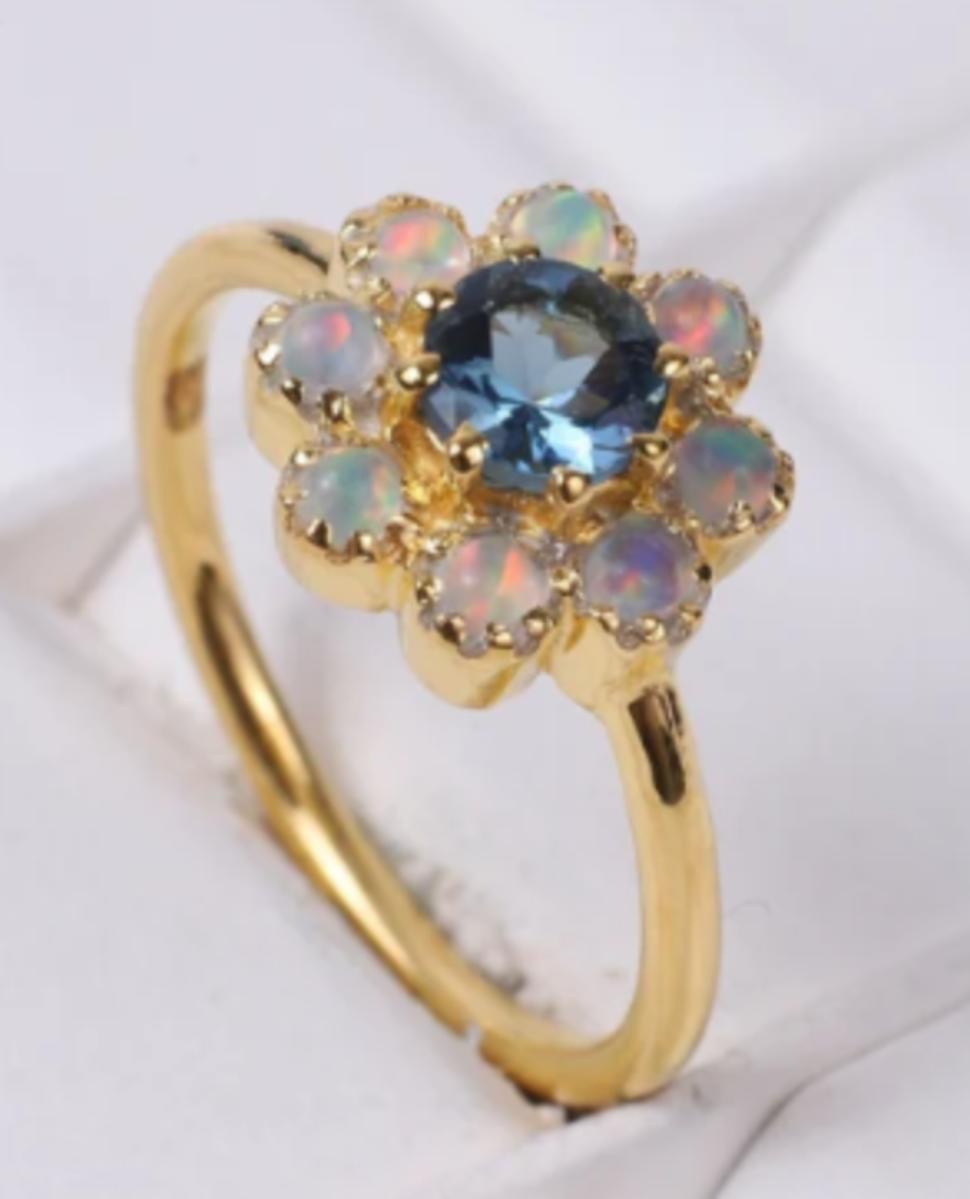 Blue Topaz Fire Opal Flower Setting Ring