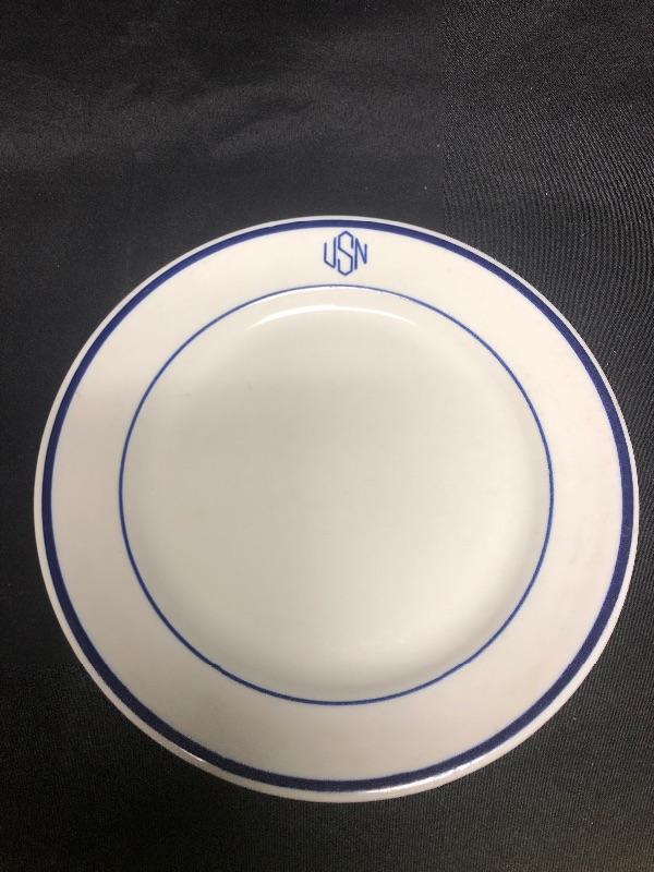 United States Navy Warrant Officer Dinner Plate. Shenango China. White with blue design.