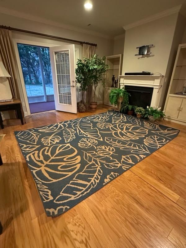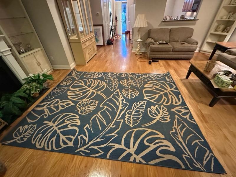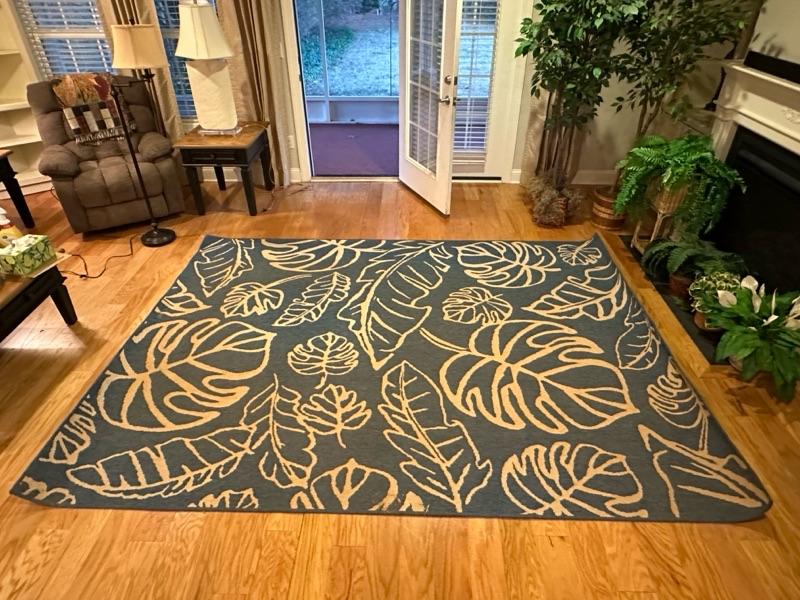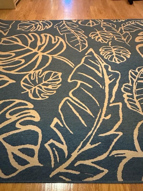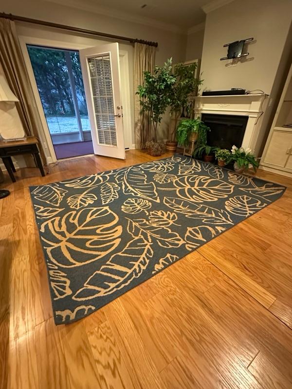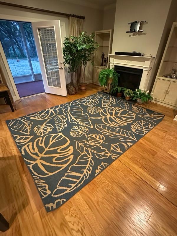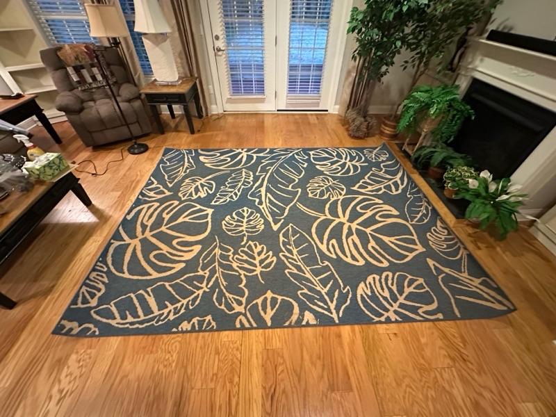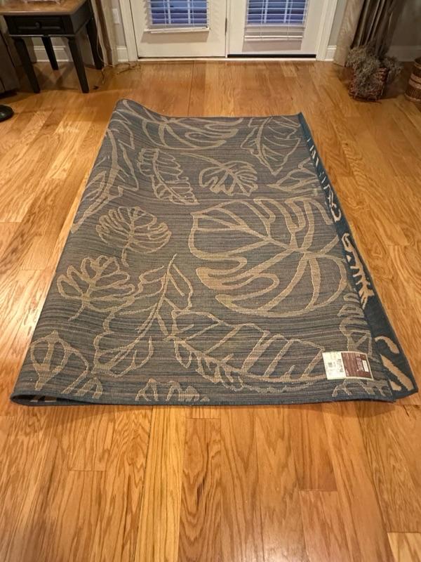 Allen + Roth Blue & White Tropical Rug. Perfect for your patio or sunroom!