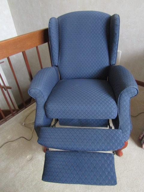 Blue Upholstered Queen Ann Style Push Back Recliner