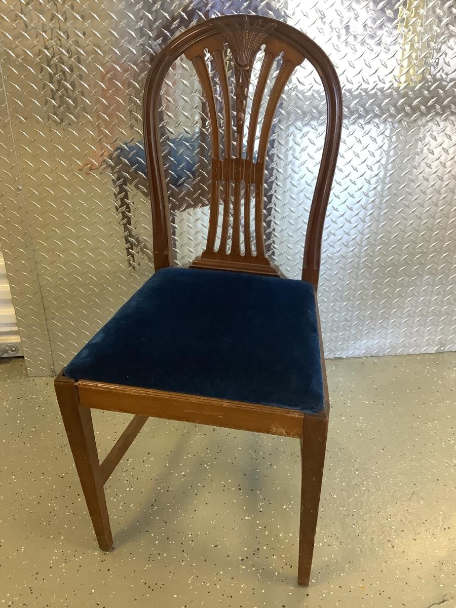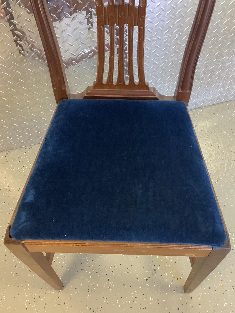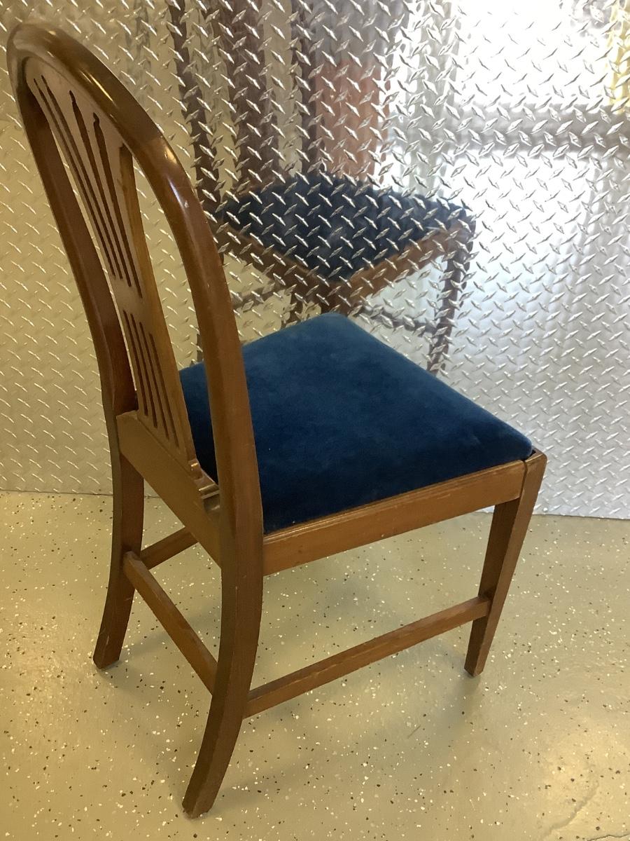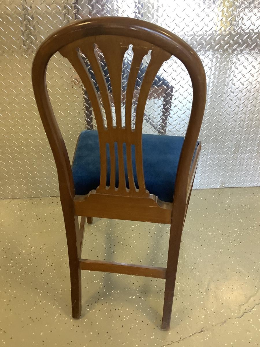 Blue velvet wooden chair 38"H 19"W 17" seat depth