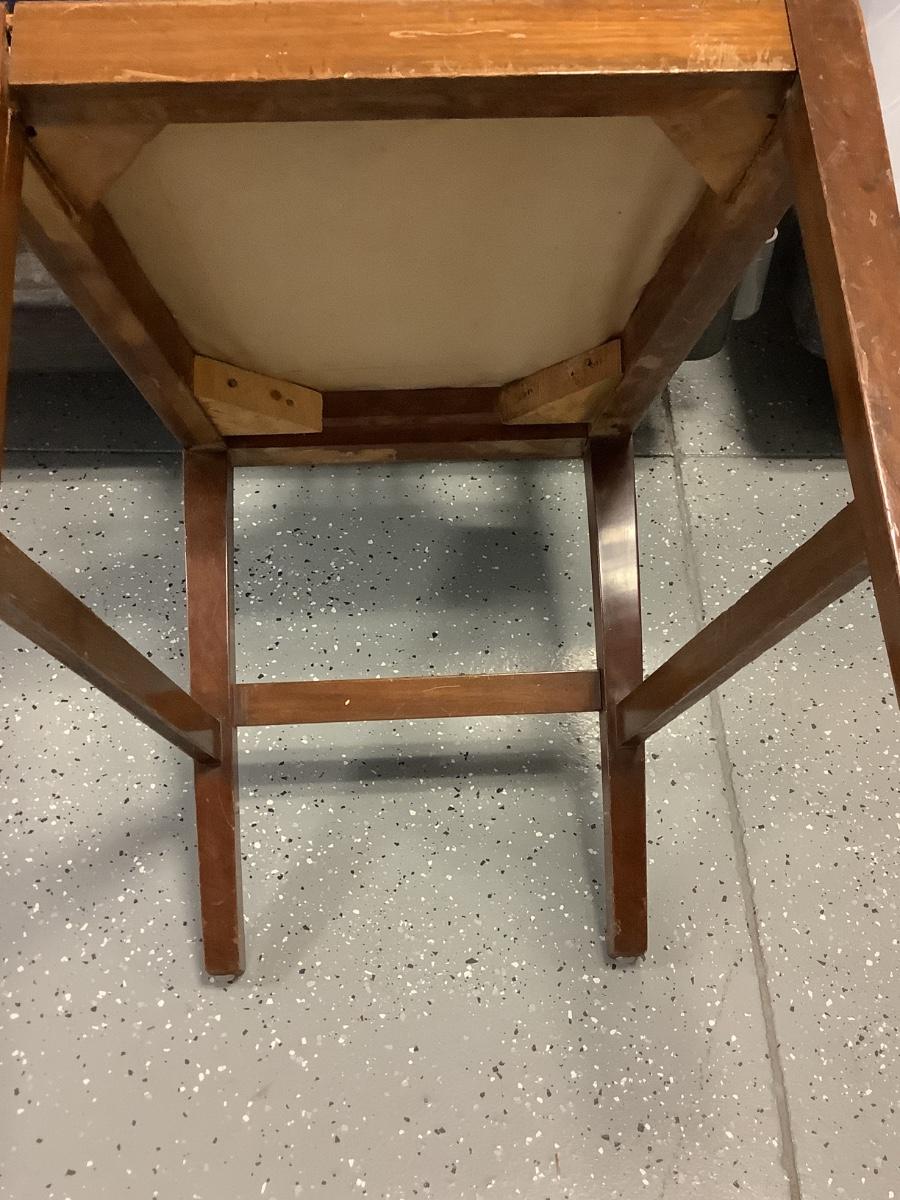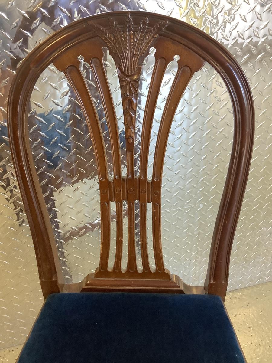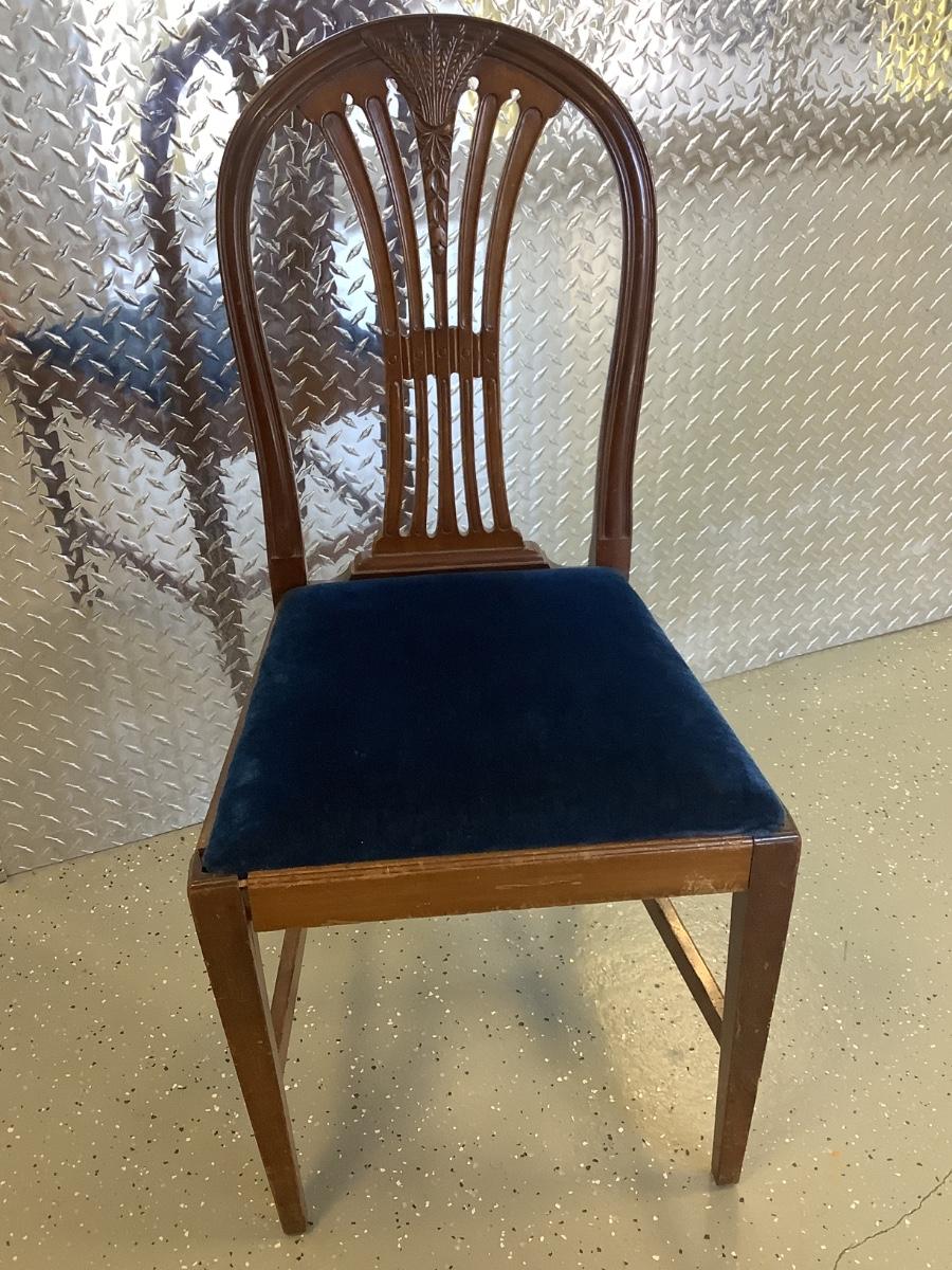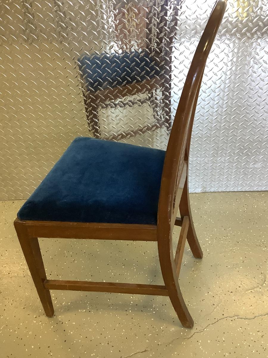 Blue velvet wooden chair 38"H 19"W 17" seat depth
