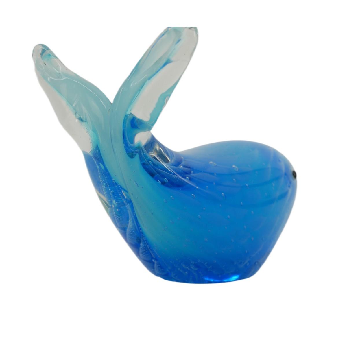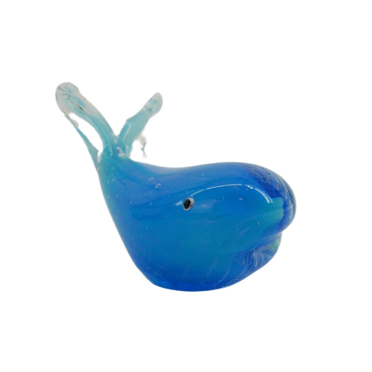 Blue pulled glass whale paperweight. Measures 4.5" x 2.5" x 4", weighs 1 lb 5.8 oz. No cracks or chips, no issues found.