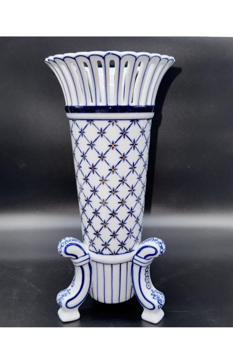 Blue & White 12” Vase - Reticulated Fluted
