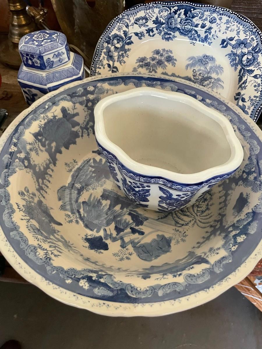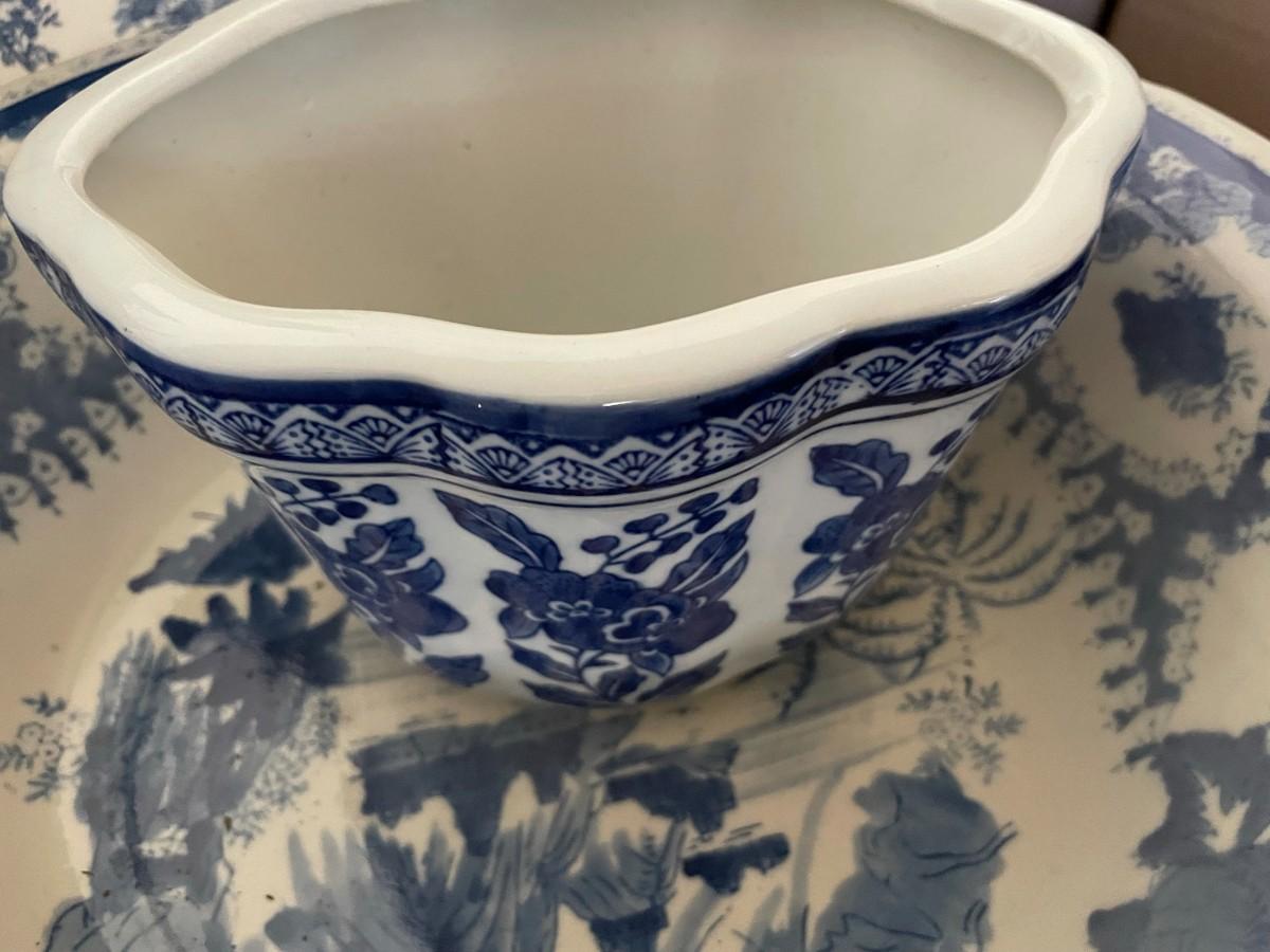 Blue & White Ceramic Bowl, Tray, Pot, Jar w/Lid