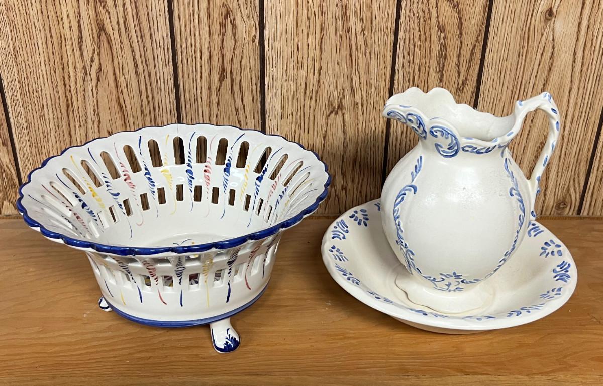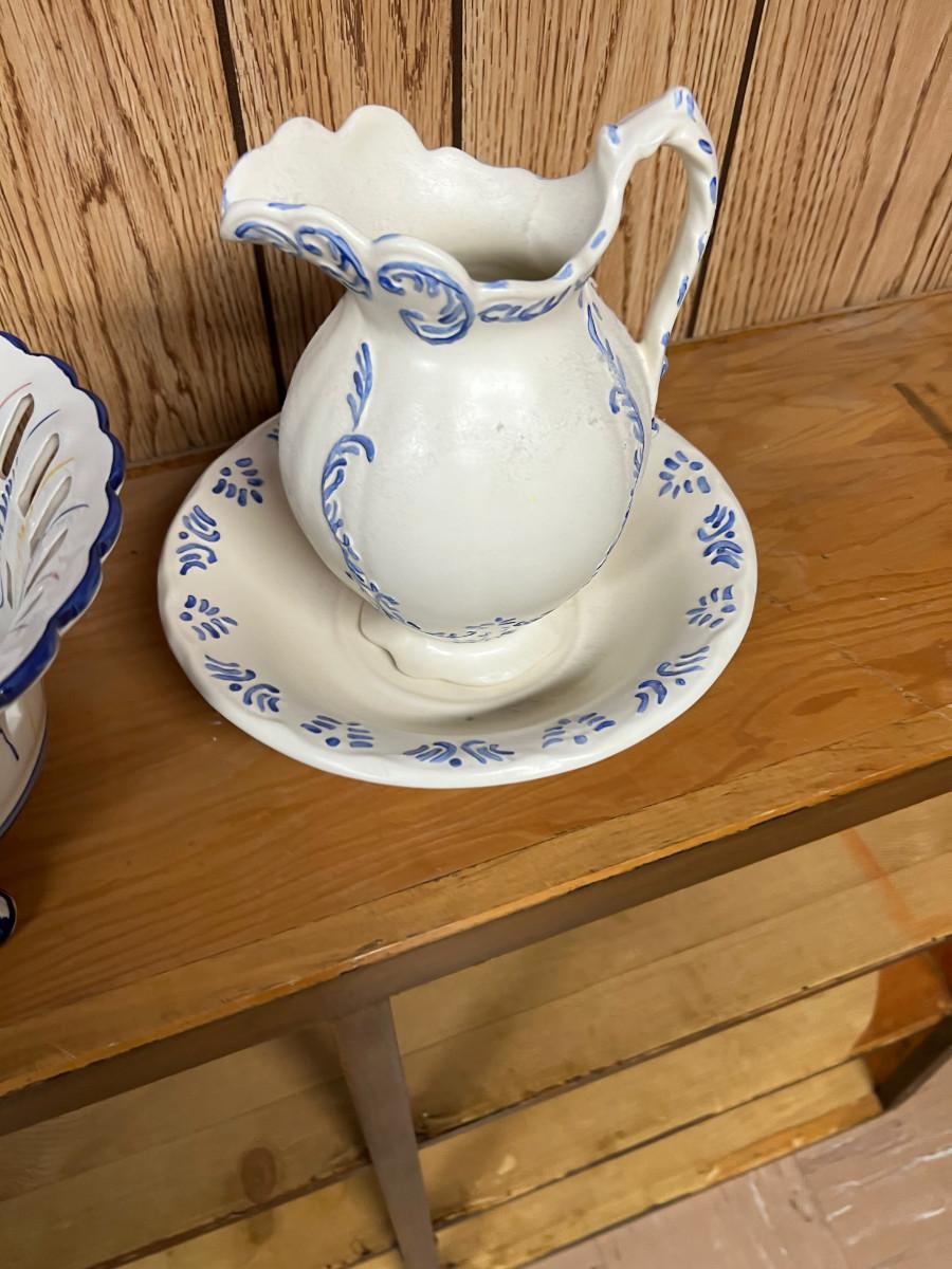 Blue & White Ceramic Bowls and A Pitcher