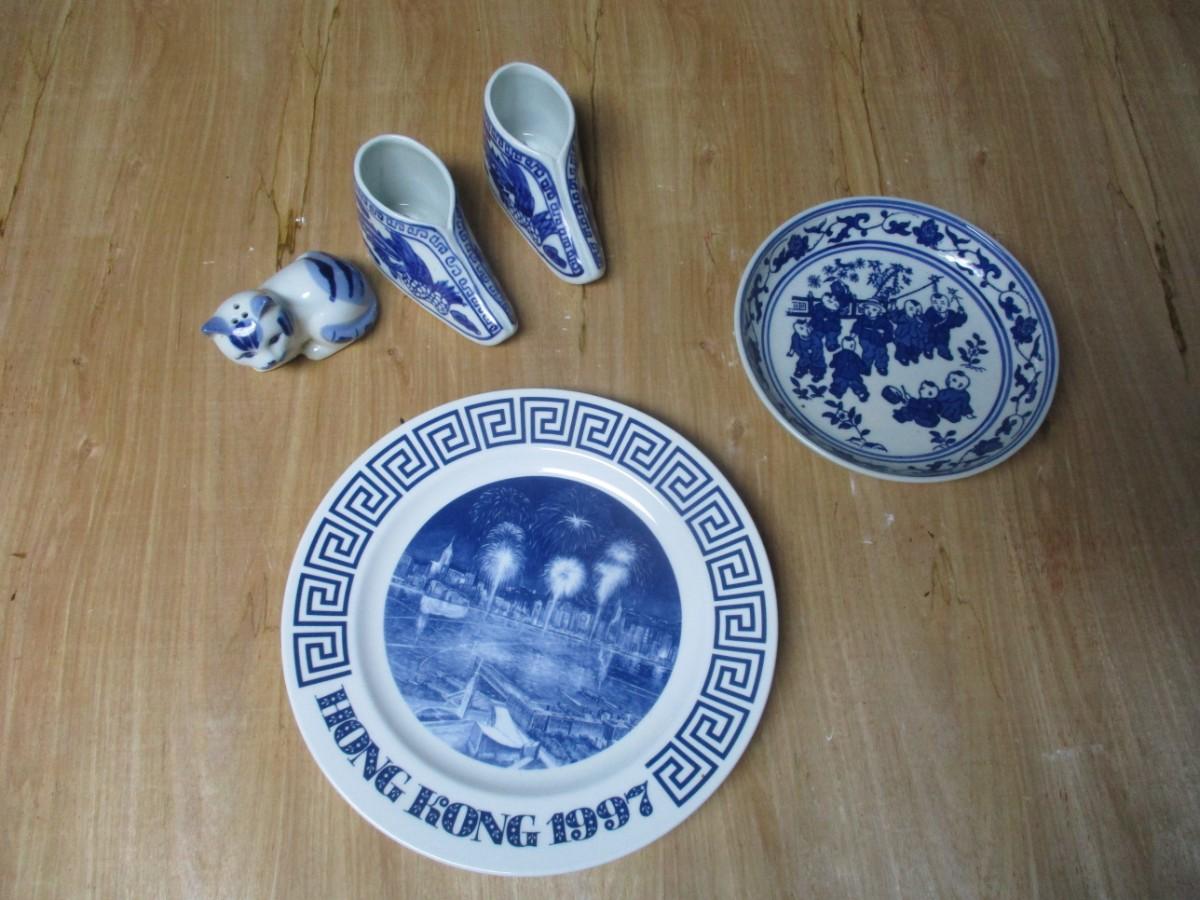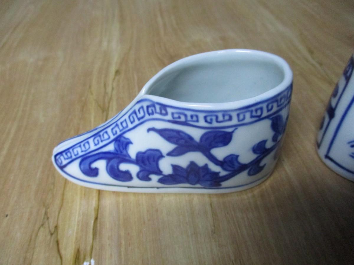 Blue & White Chinese Plates Shoes & Cat Shaker - C