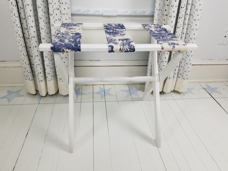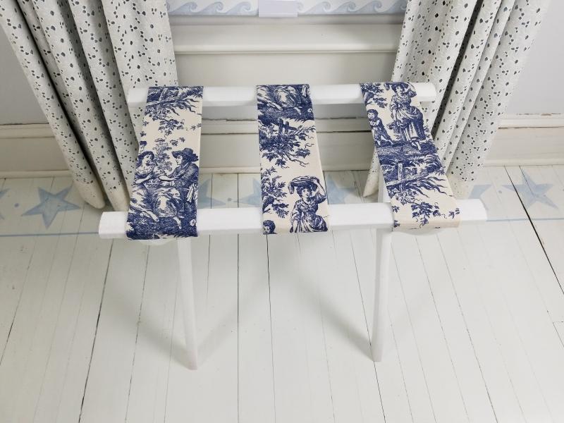 White Luggage Rack with Toile Straps (custom)