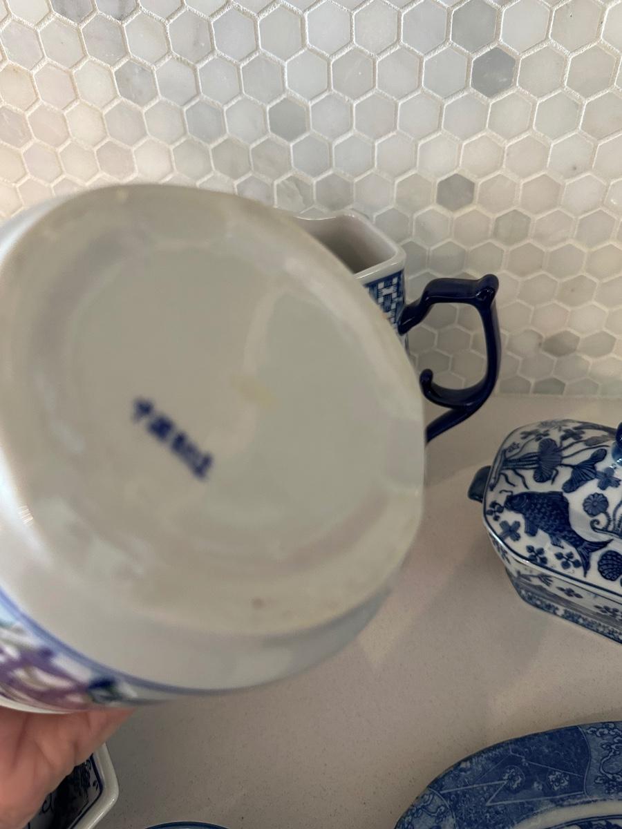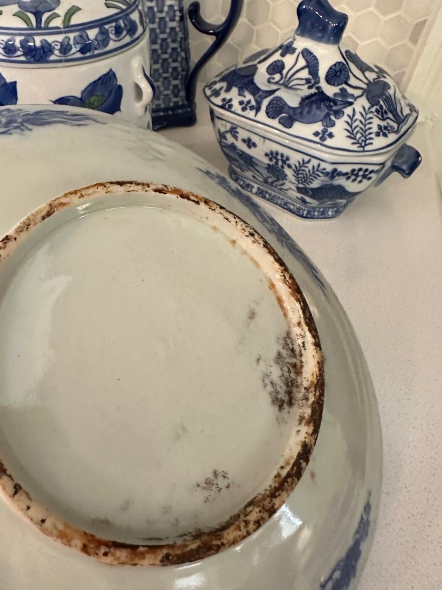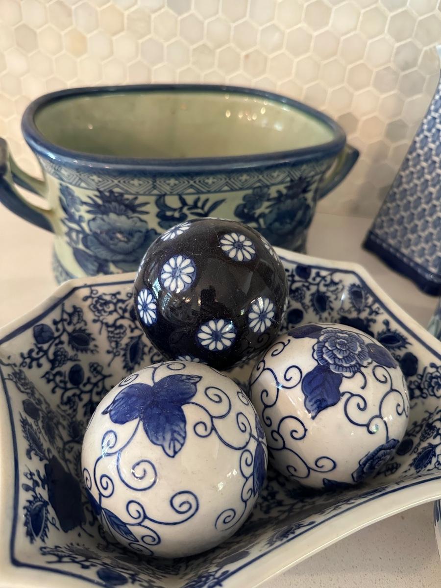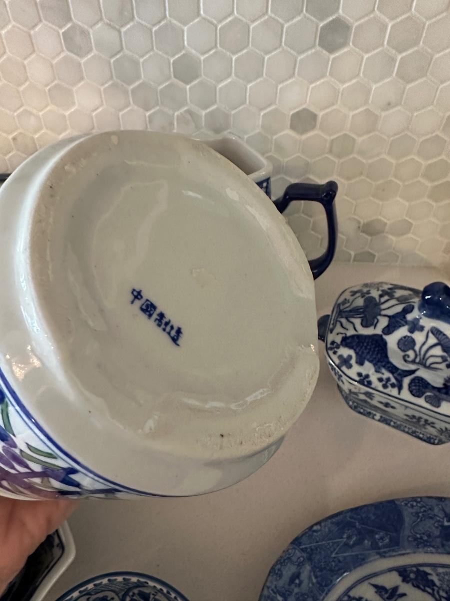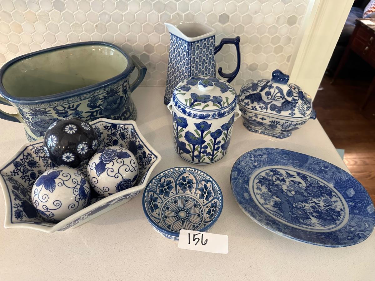 BLUE WHITE HOME DÉCOR AS PICTURED ONE LID HAS BEEN REPAIRED