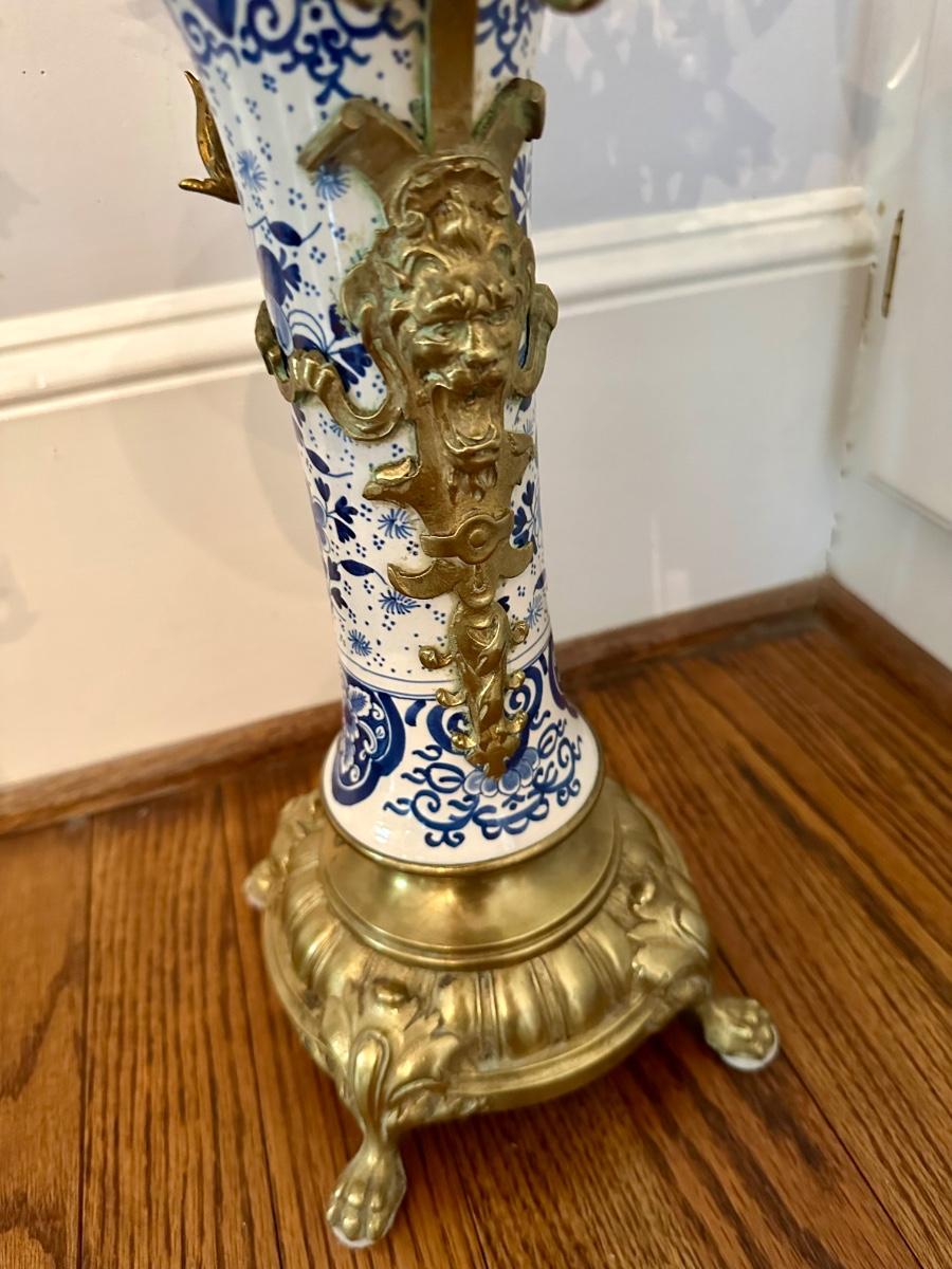 BLUE WHITE DELFT BRASS CANDLEABRA PAIR 25" TALL