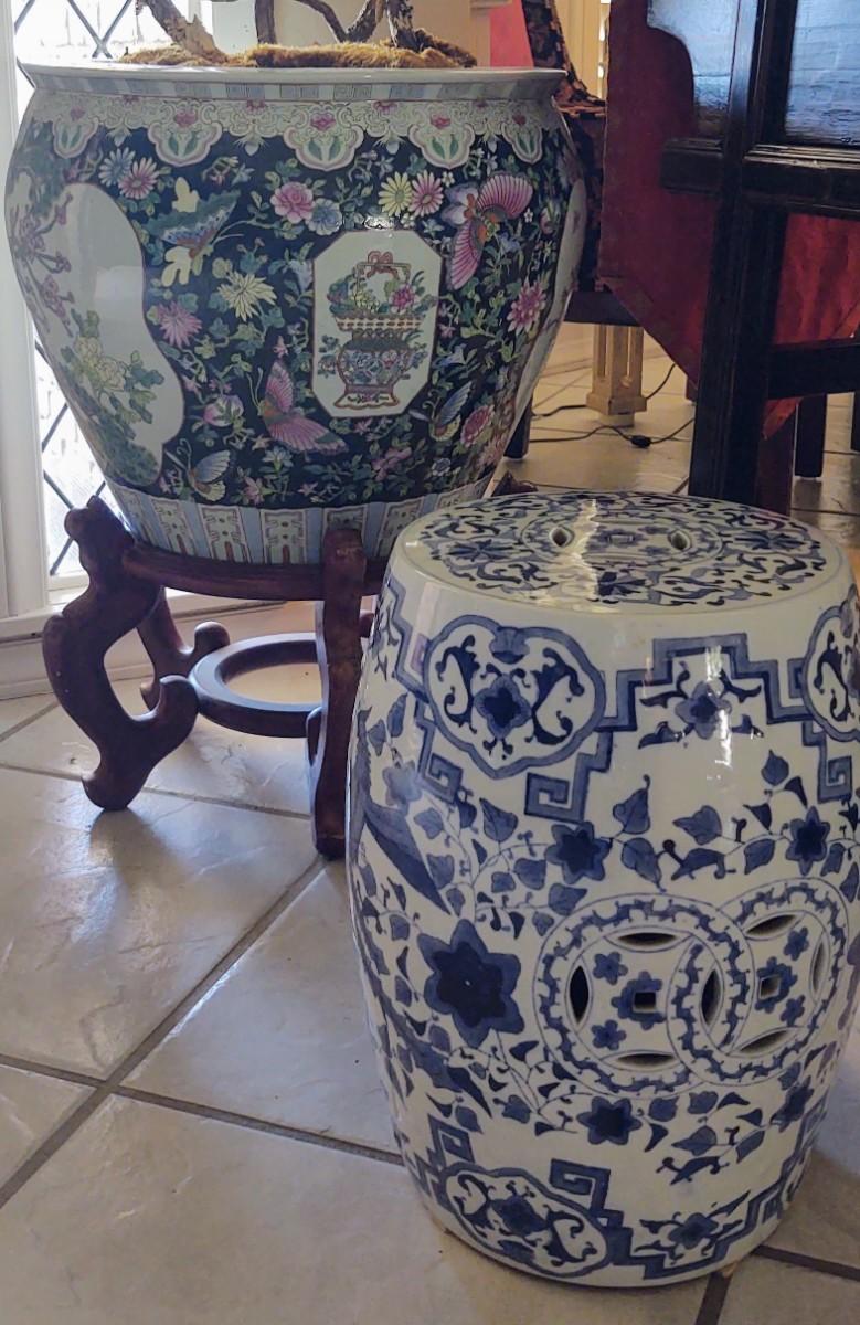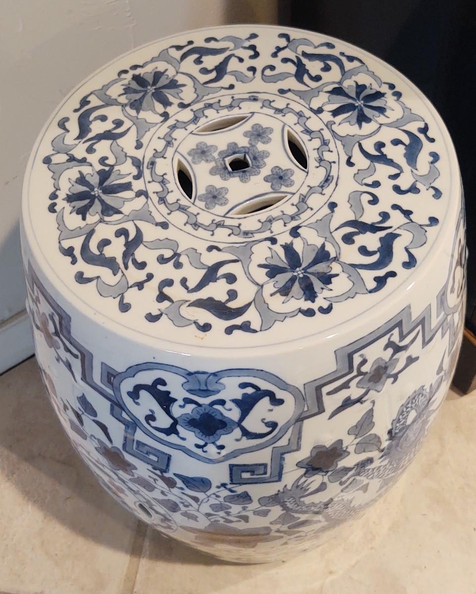 Ceramic stand, 16 inches high and 10 inches round on top.