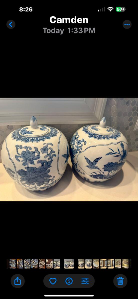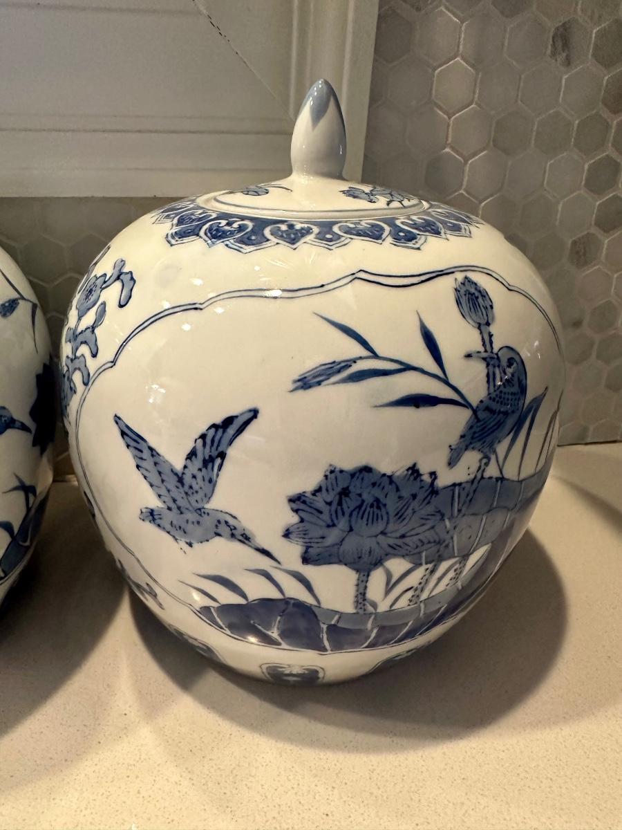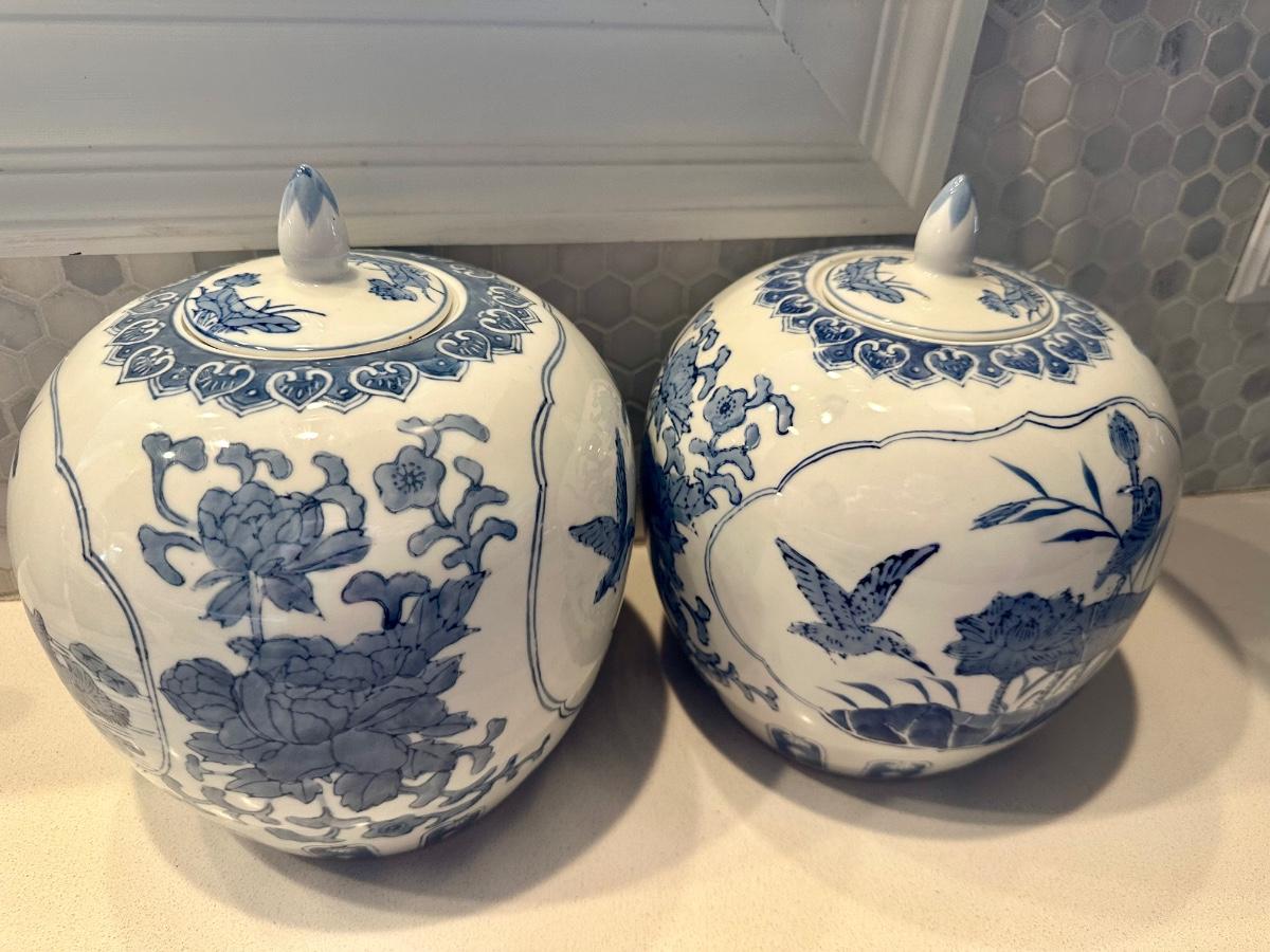 BLUE WHITE GINGER JAR PAIR 12” tall