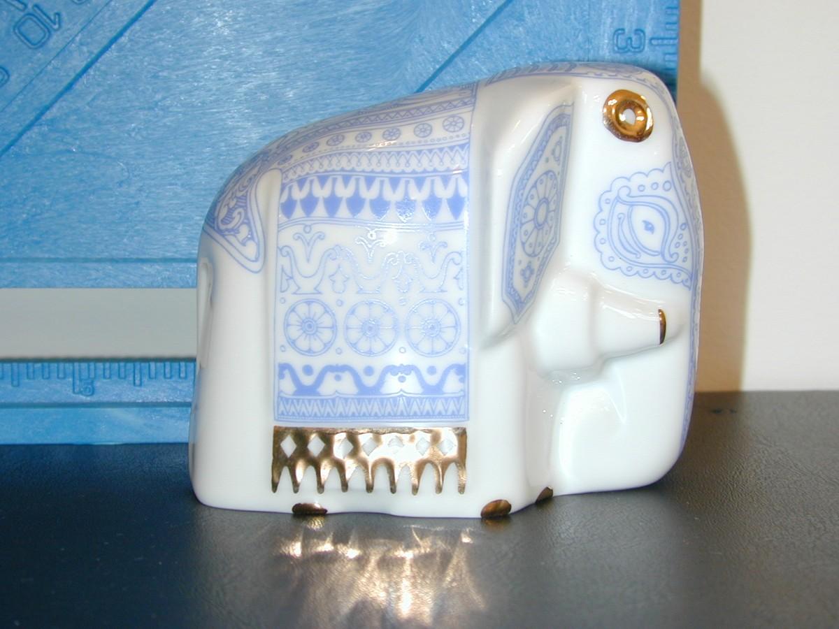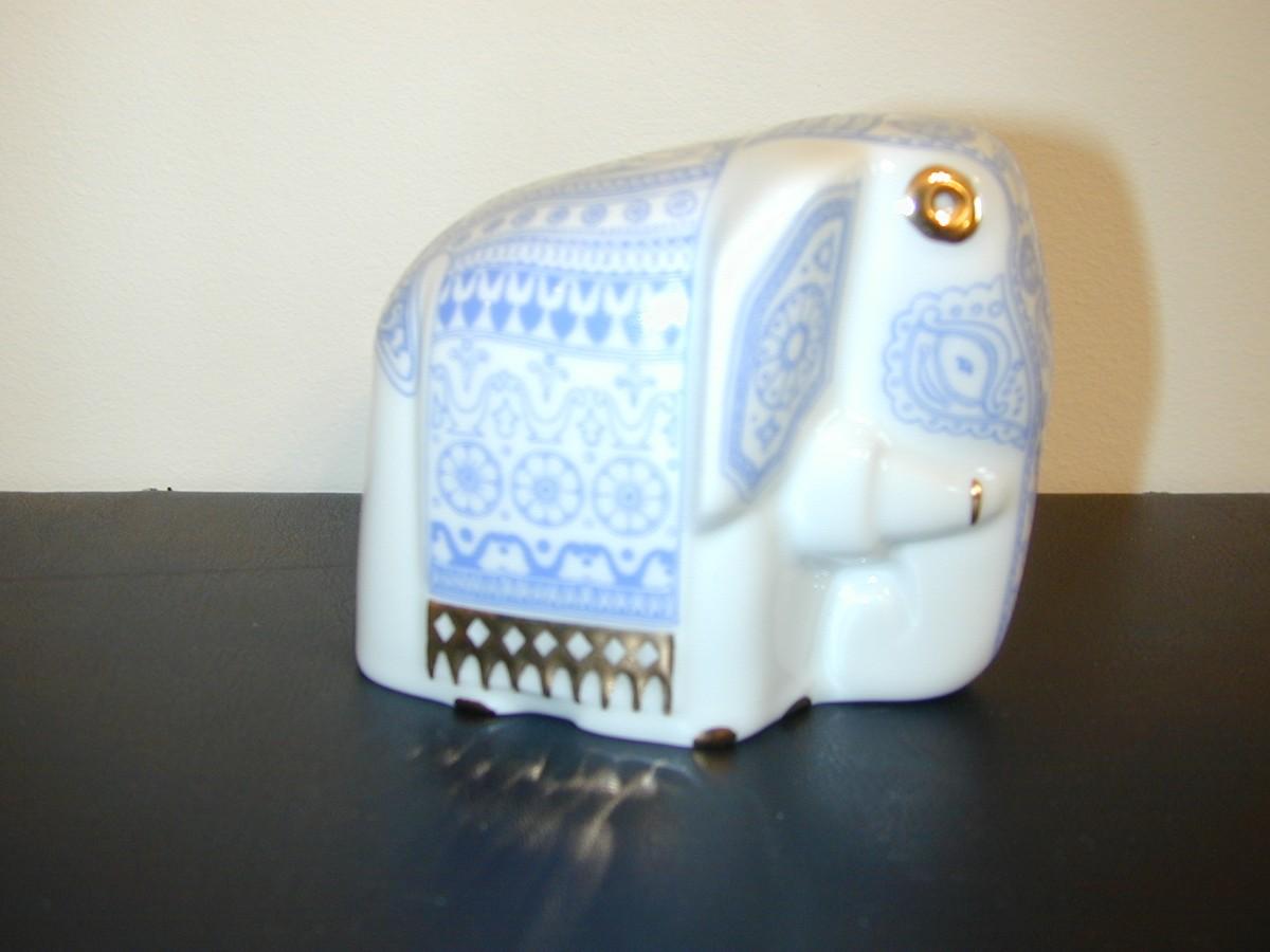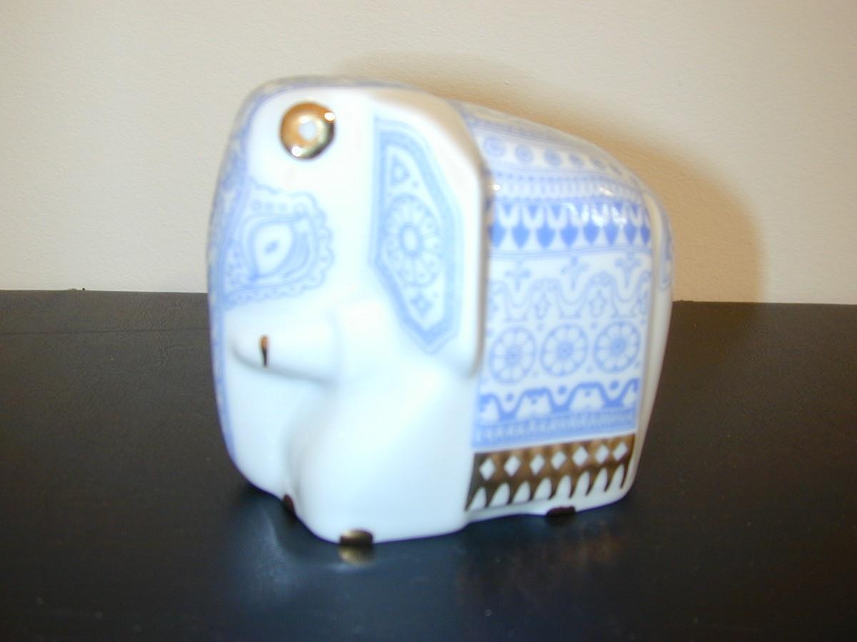 Blue White Gold Mlesna Porcelain Elephant Tea Caddy In Box Lot 434