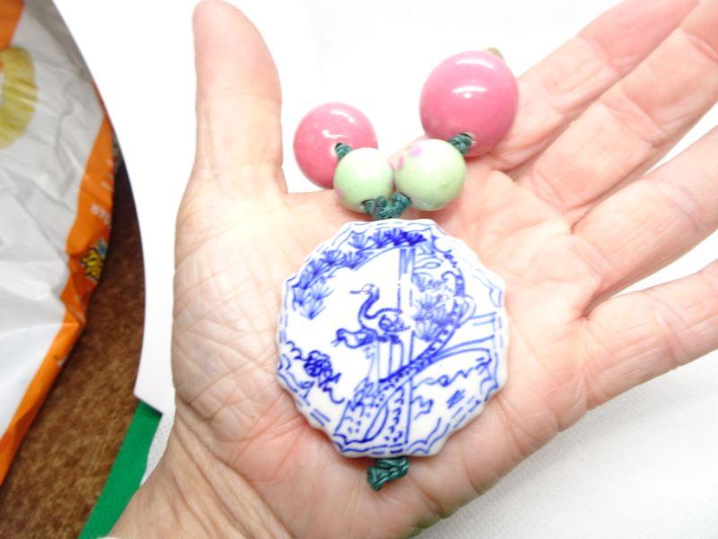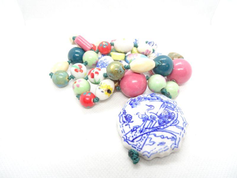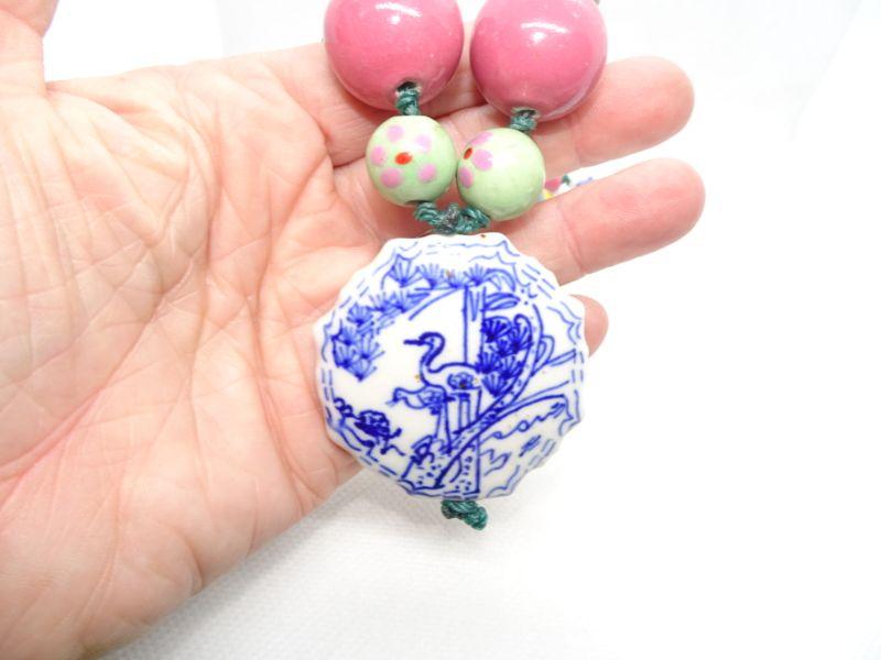 Blue & White Medallion Ceramic Beaded Pendant Necklace