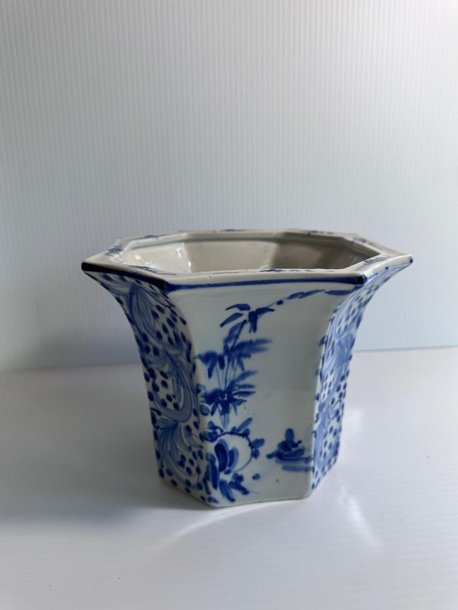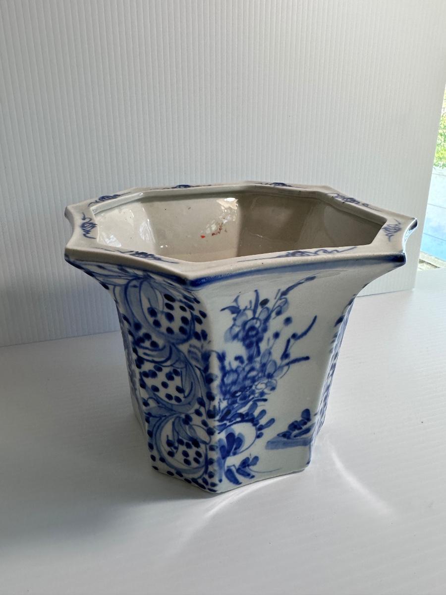 CHINESE OCTAGONAL BLUE & WHITE PLANTER