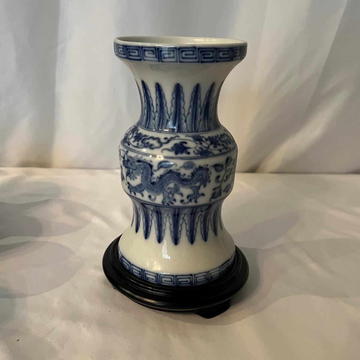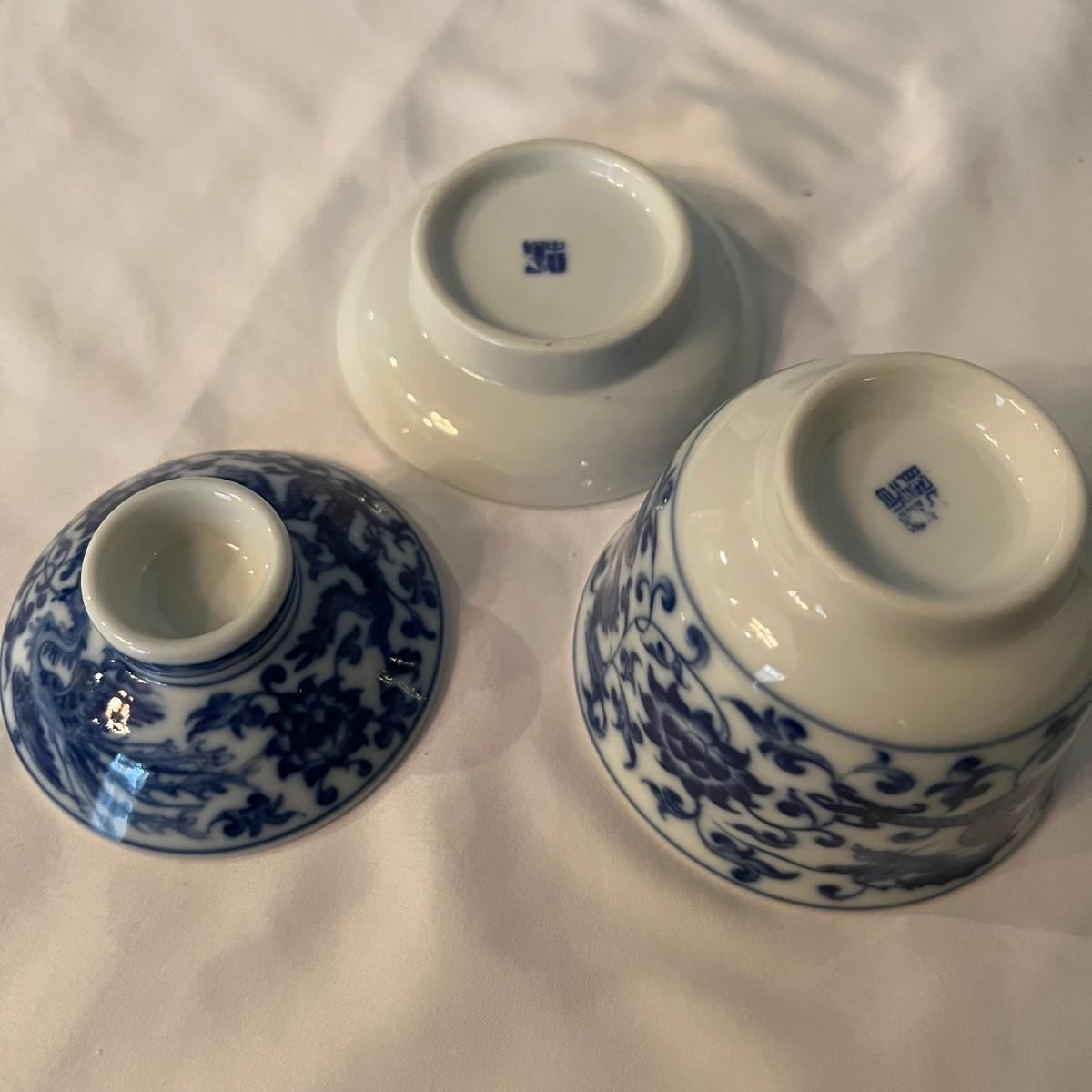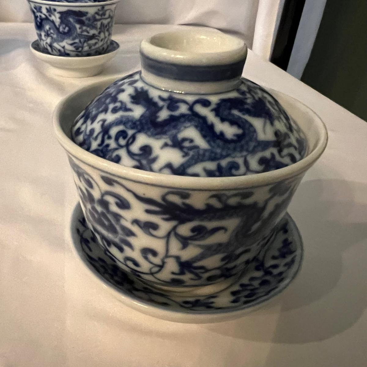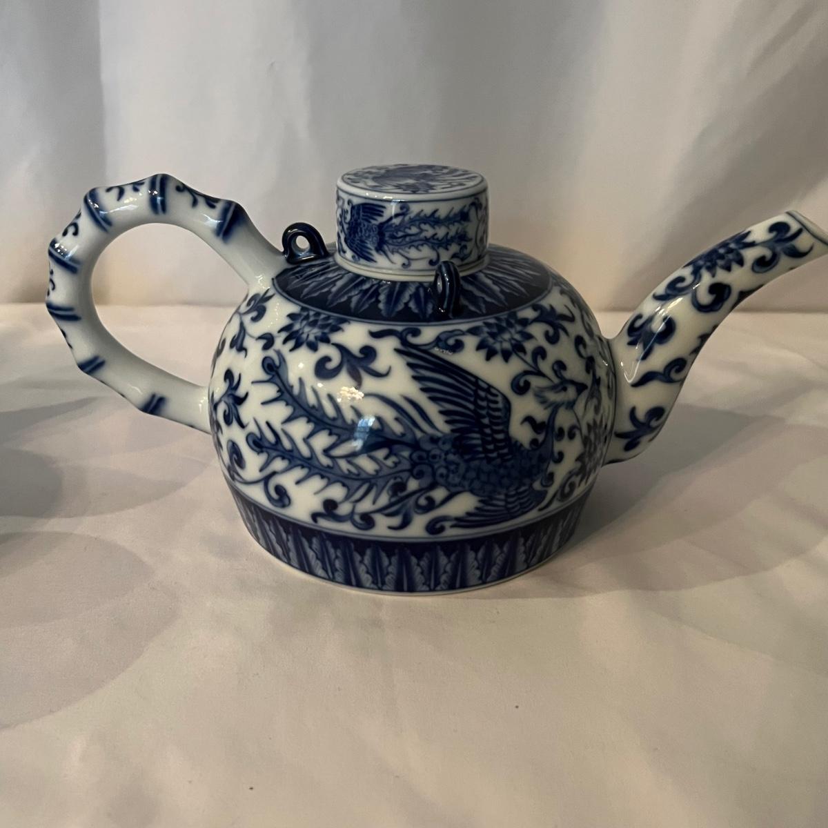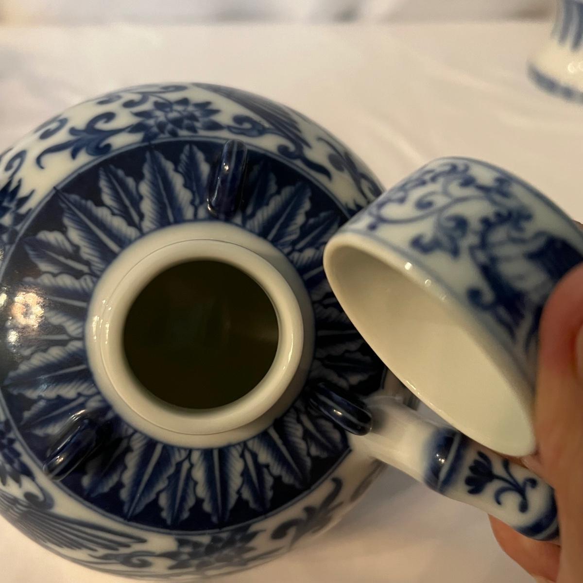 Blue & White Porcelain China Teapot & Cups Plus Vase (K-RG)