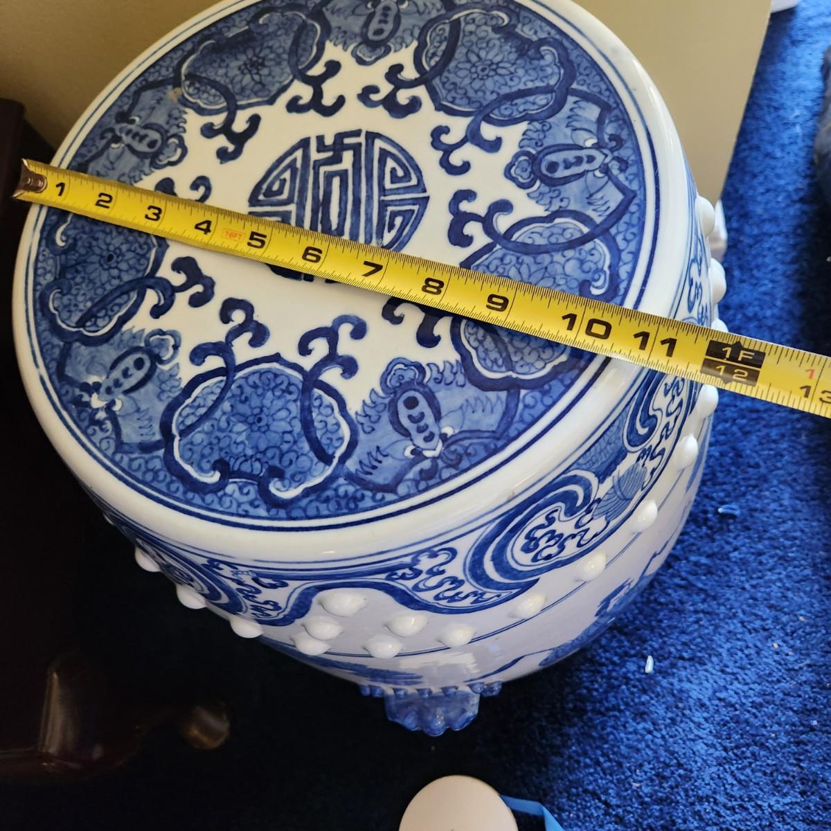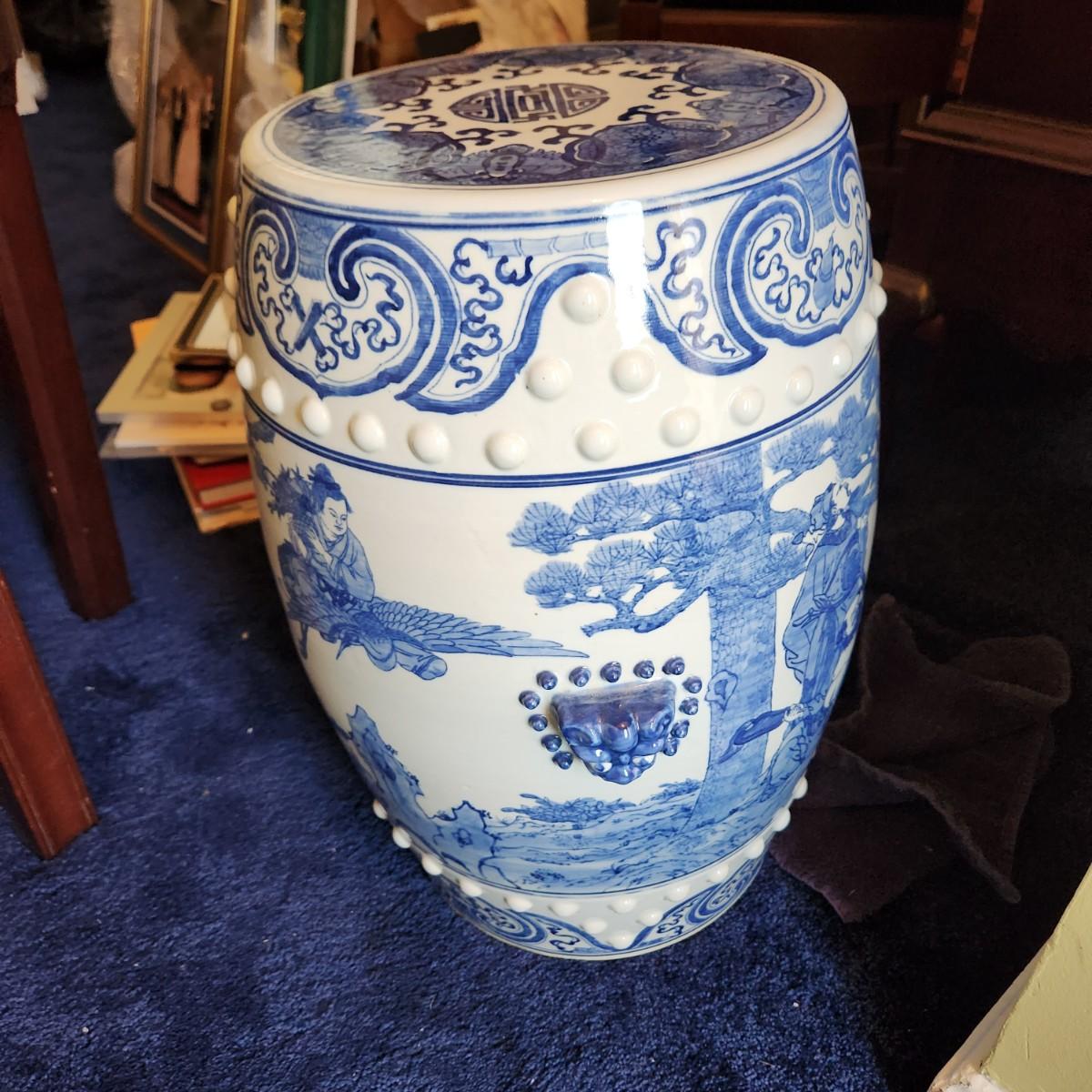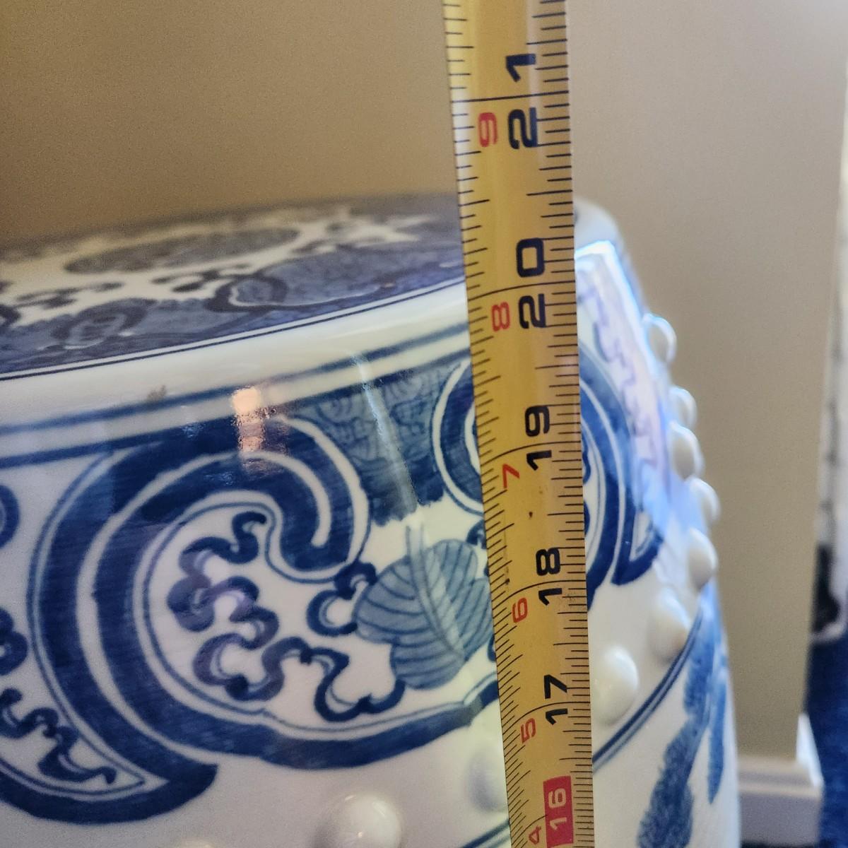 Blue & White Porcelain Garden Stool 20" tall 11" Dia.