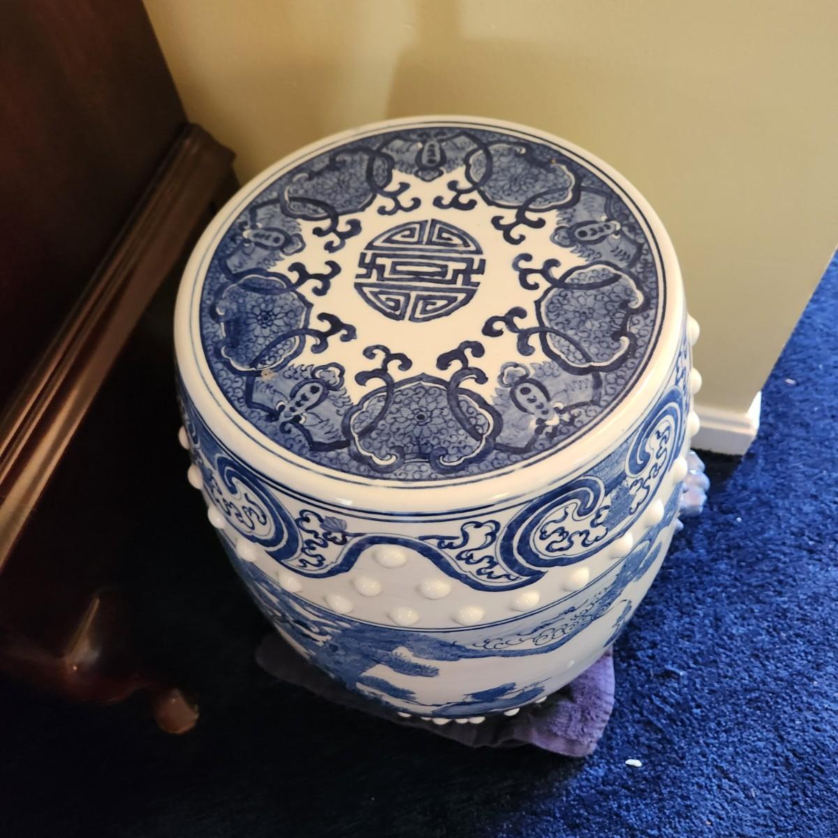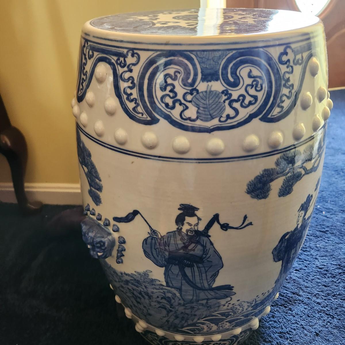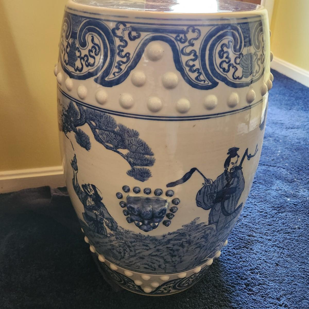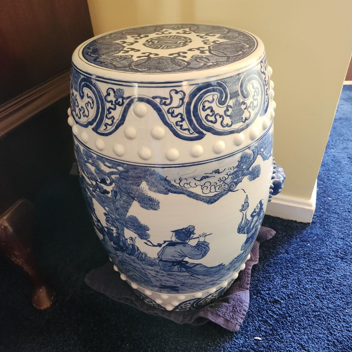 Blue & White Porcelain Garden Stool 20" tall 11" Dia.