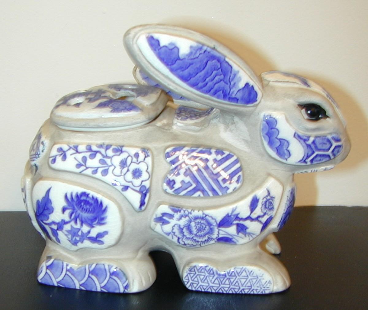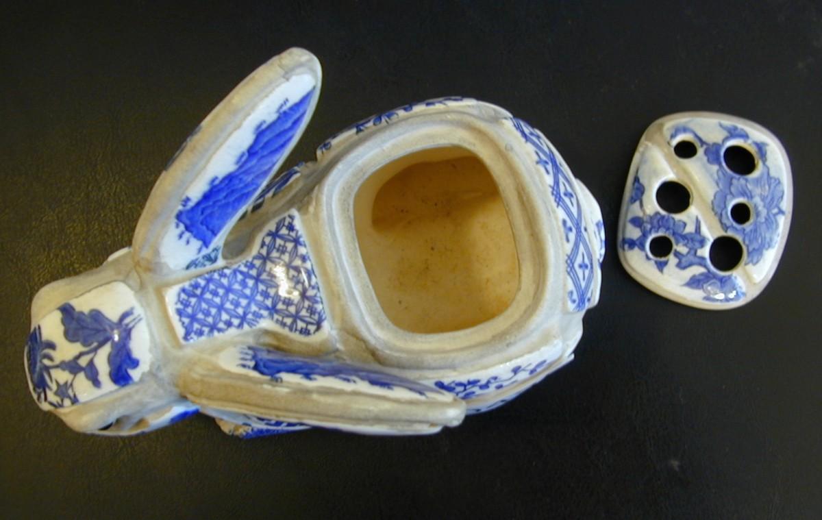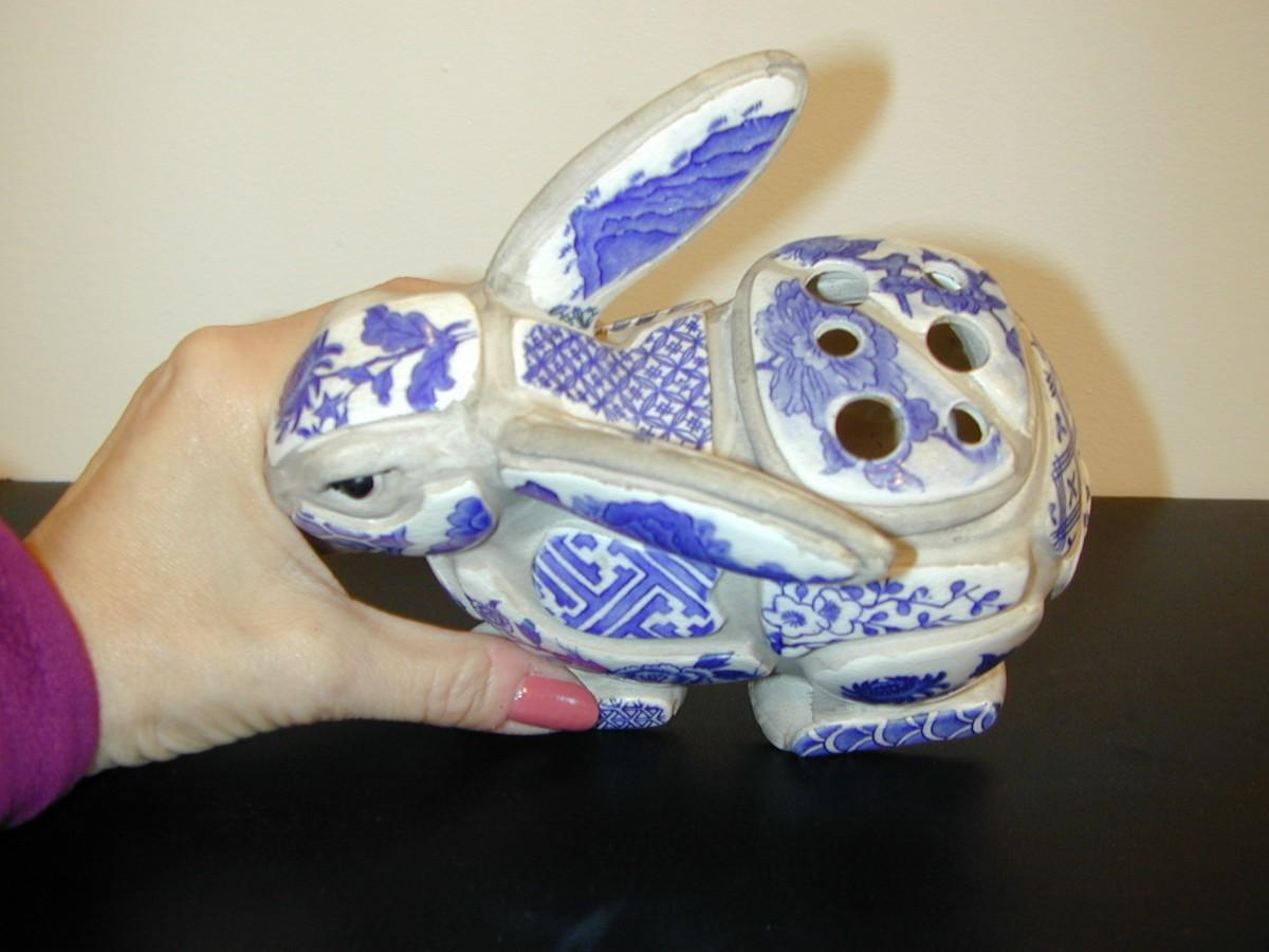 Nancy Lopez Blue & White Porcelain Shard Bunny Rabbit Incense Burner Lot 436