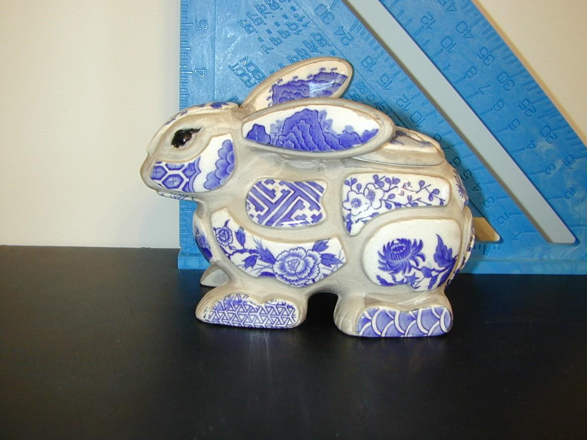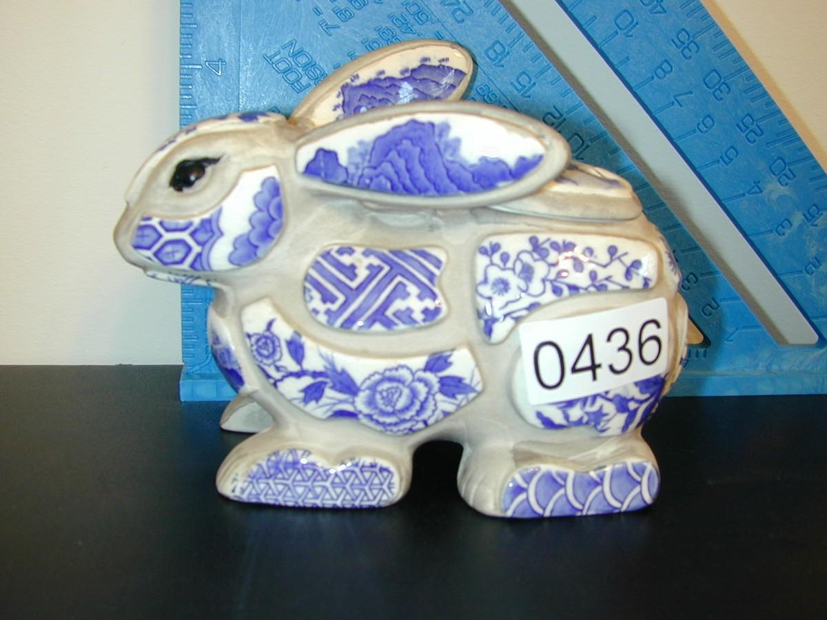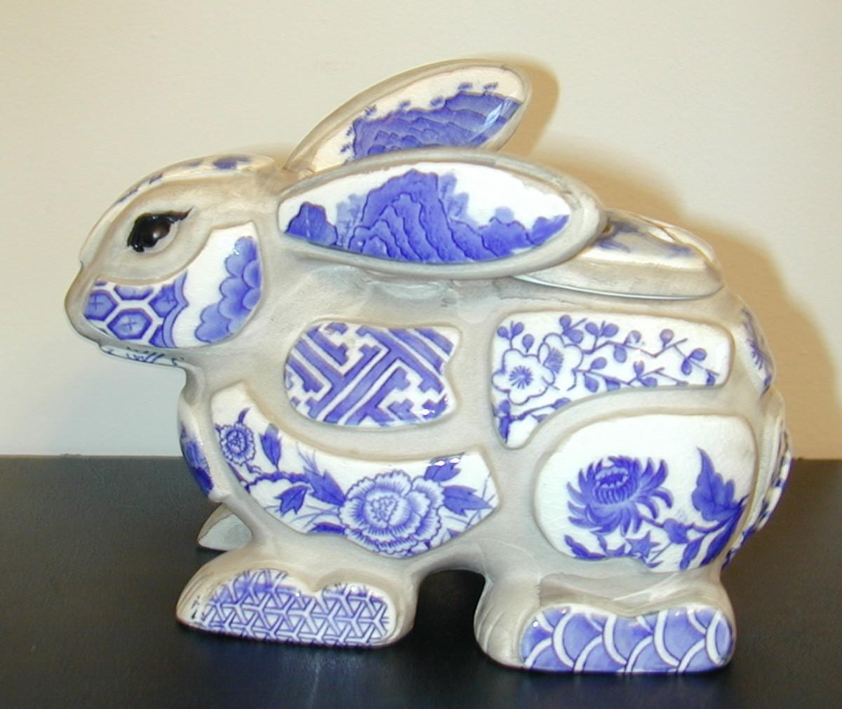 Nancy Lopez Blue & White Porcelain Shard Bunny Rabbit Incense Burner Lot 436