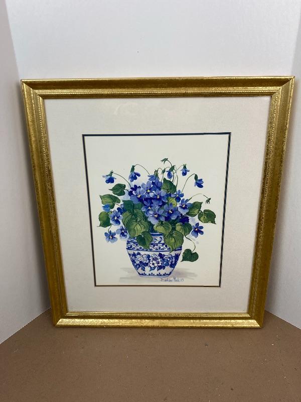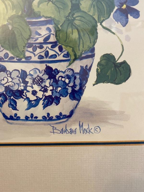 Lot # 72 -Blue & White Potted Plant Framed Print- Violets