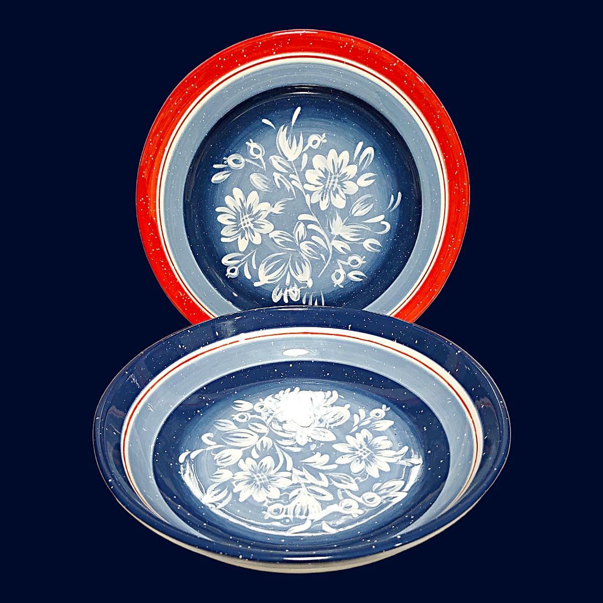 Blue, White & Red Ceramic Plate & Large Bowl