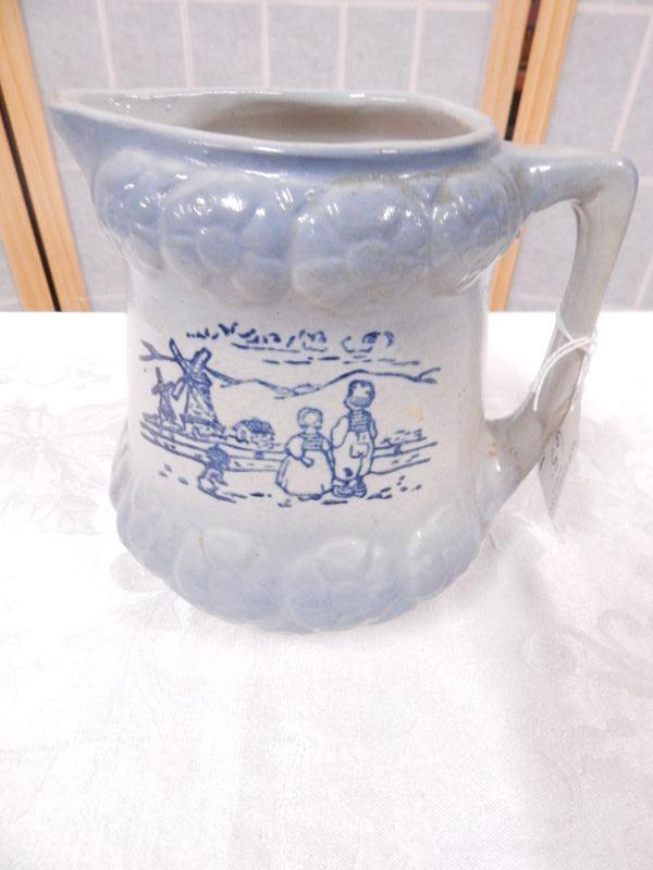 Blue & White Stoneware Pitcher - Dutch Scenery - 7-1/4" Tall