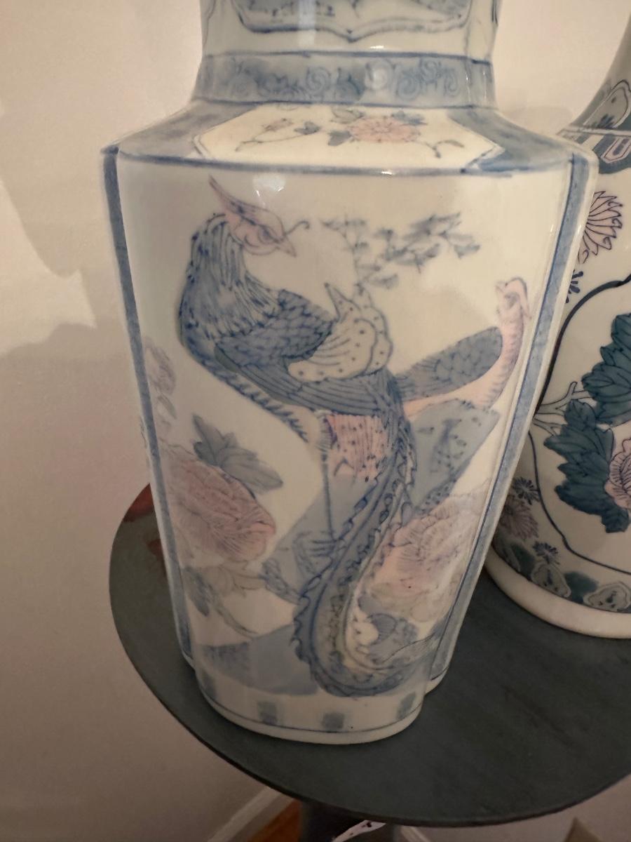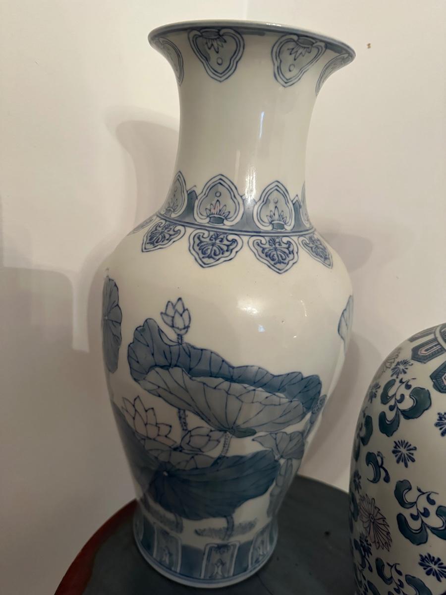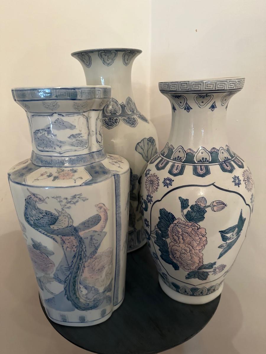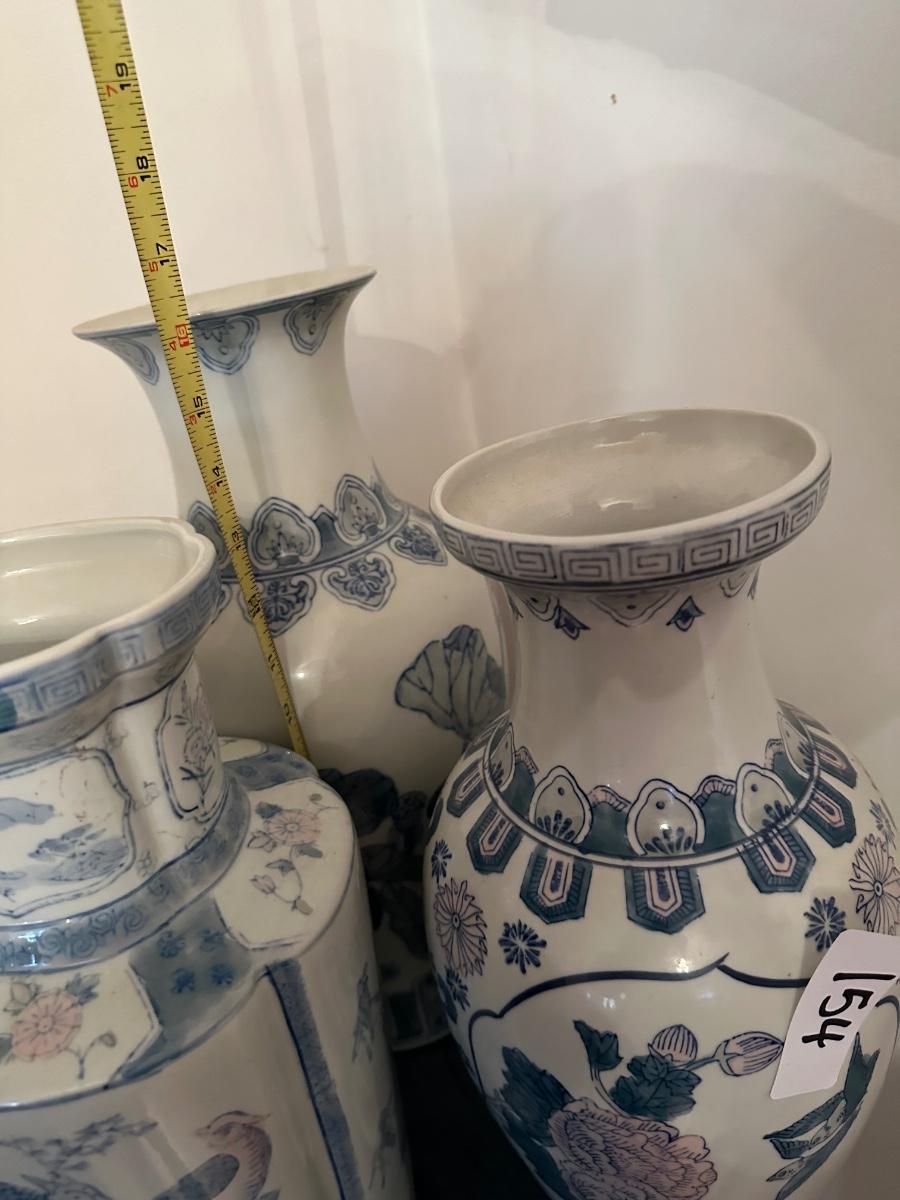 3 BLUE & WHITE VASES 13" & 16" TALL AS PICTURED