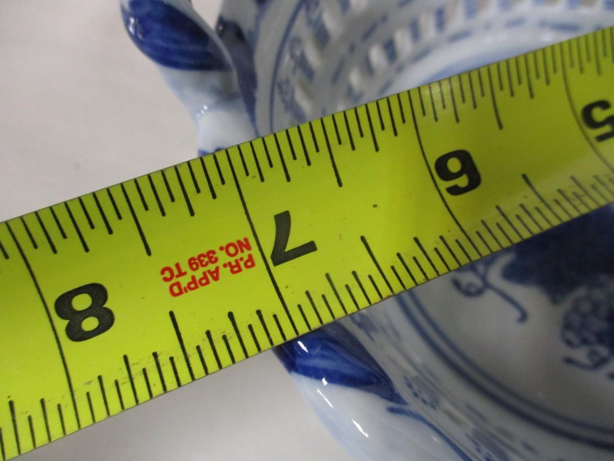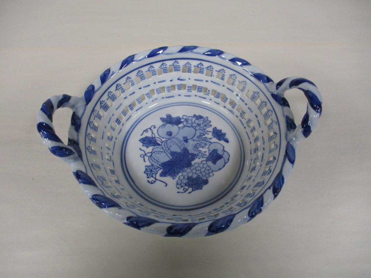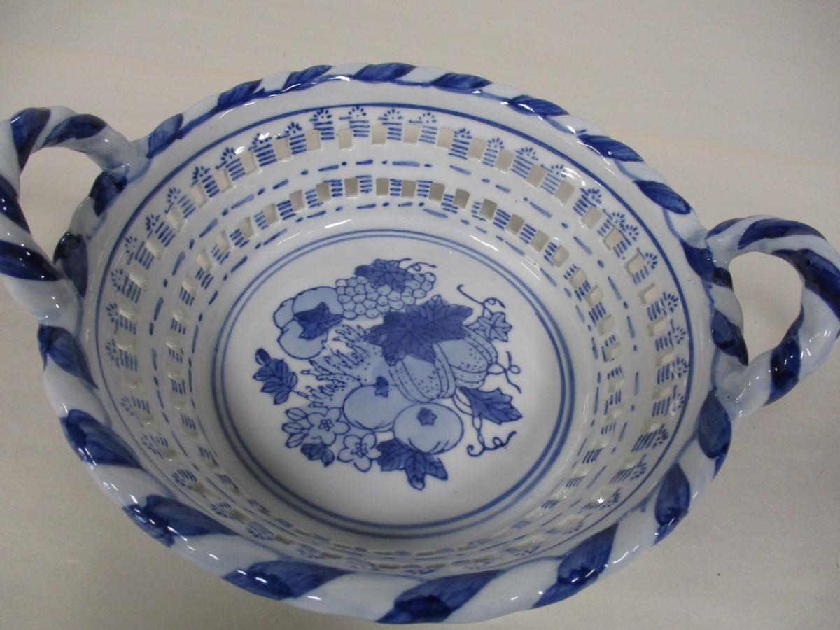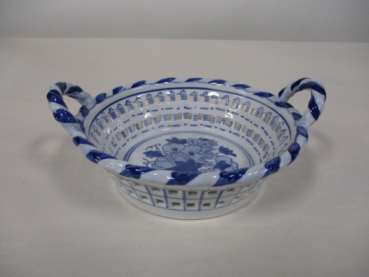 Blue & White Vintage Floral Reticulated Bowl Basket