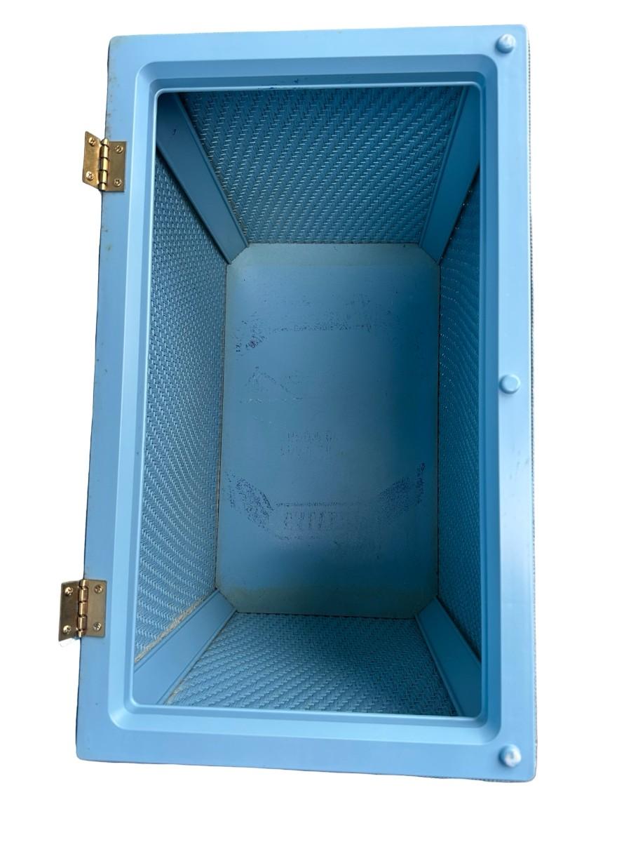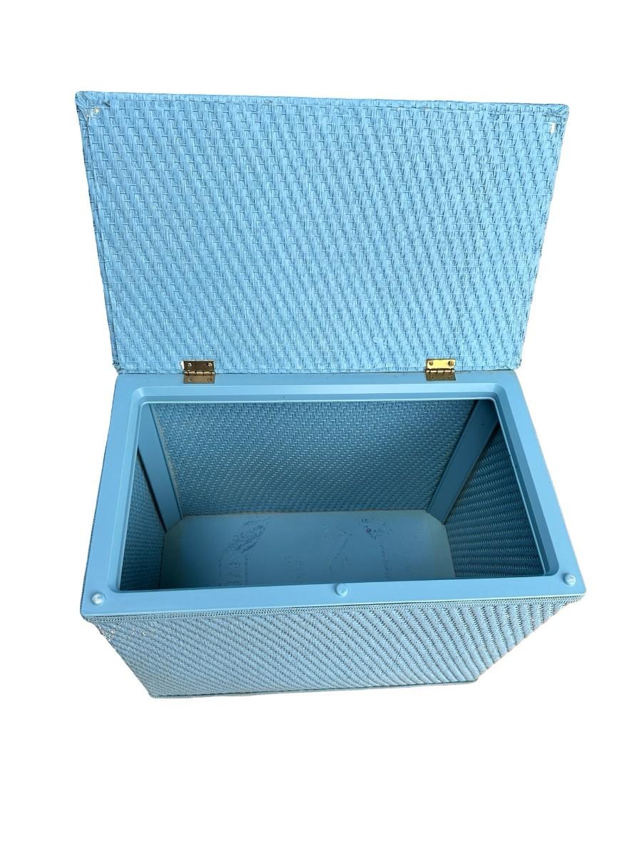Blue Wicker Style Laundry Hamper, very good vintage condition