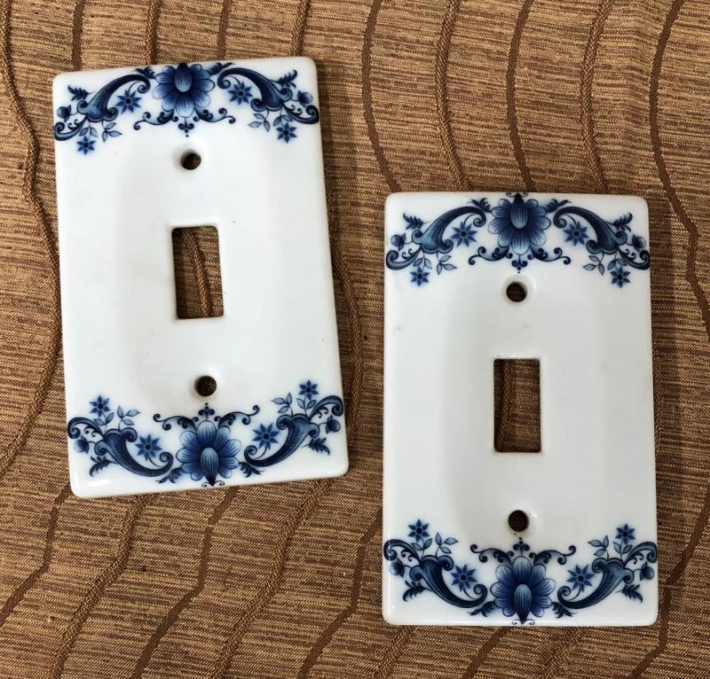 BLUE WILLOW CERAMIC LIGHT SWITCH PLATES 2
