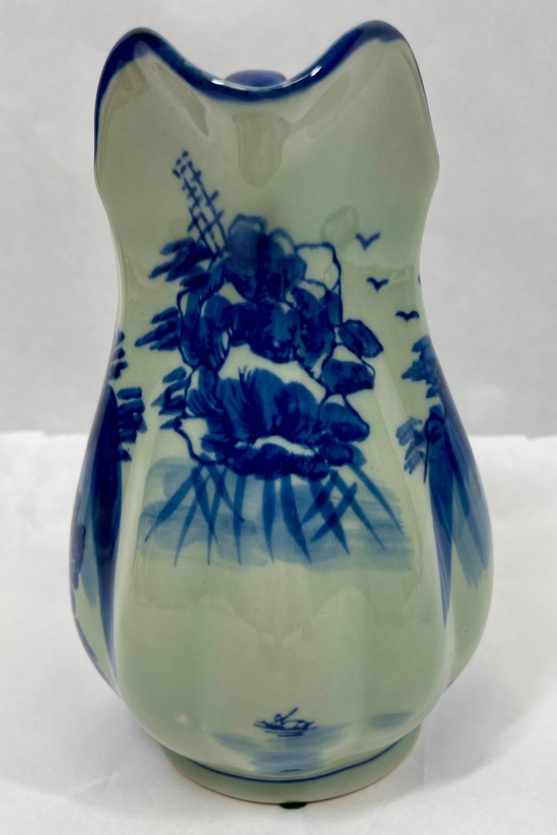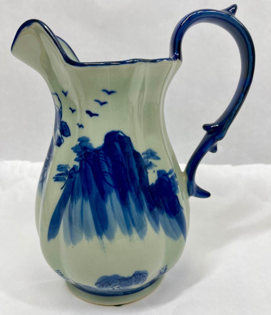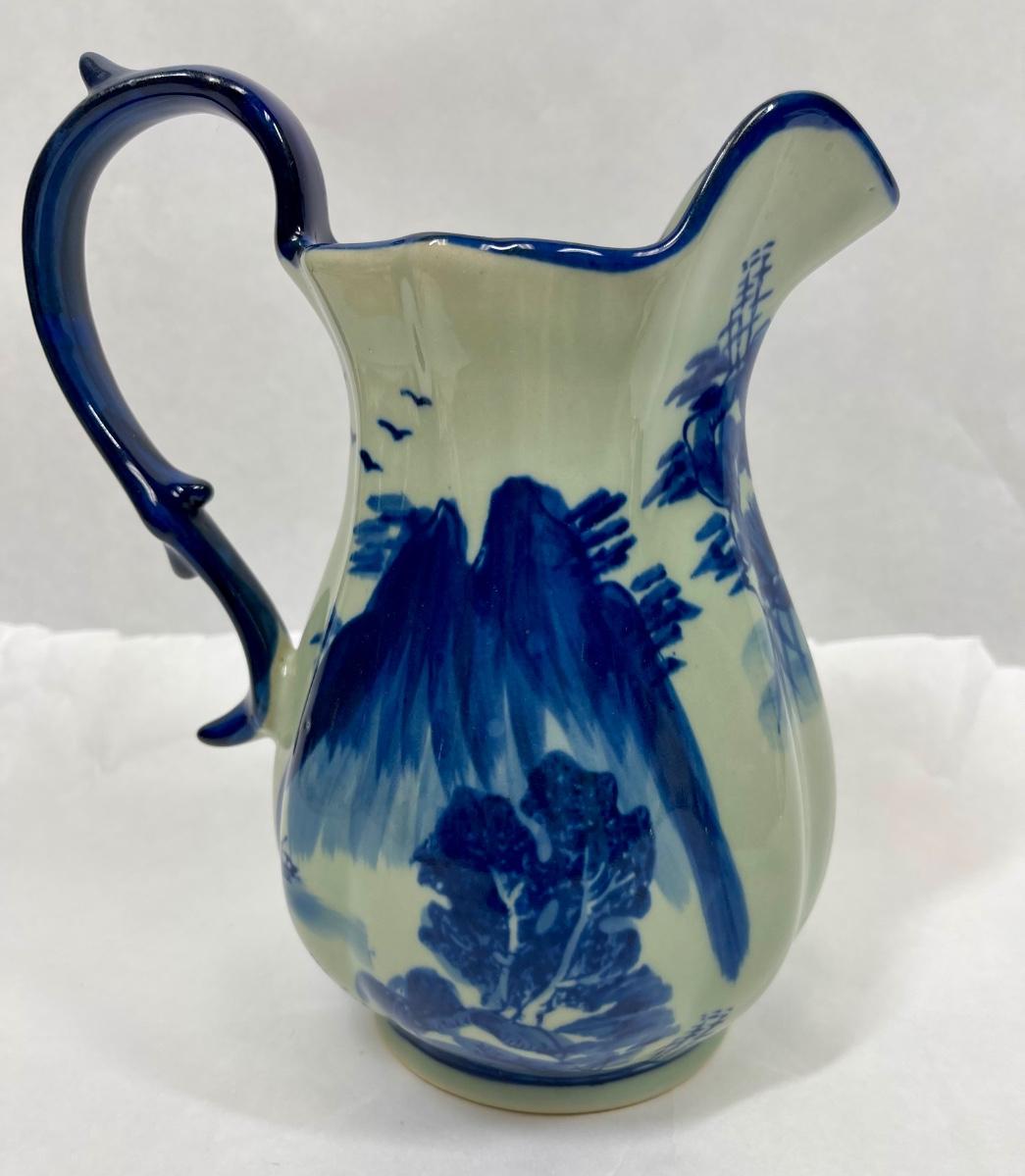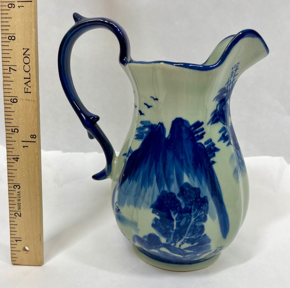 Blue Willow Hand-painted Ceramic Pitcher 9" tall