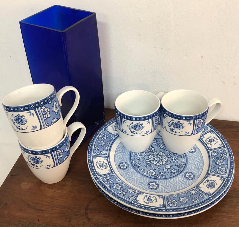Lot of blue china and glass vase. If you need shipping please be aware that the cost of shipping may be more than what the item cost. All items ship from zip code 84109, you can go to USPS.com for estimates of cost.