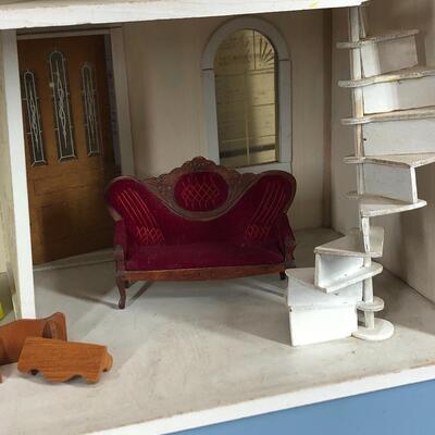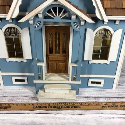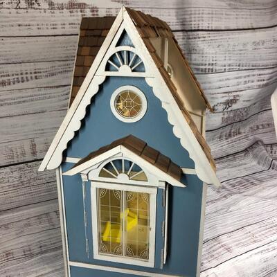 Blue Wood Two Story Dollhouse Cottage with Furniture