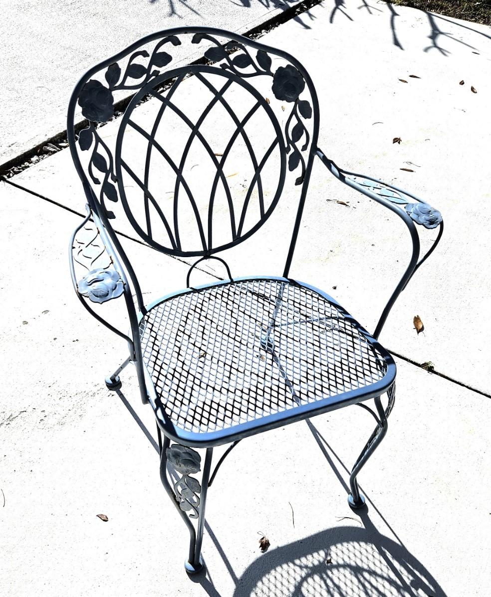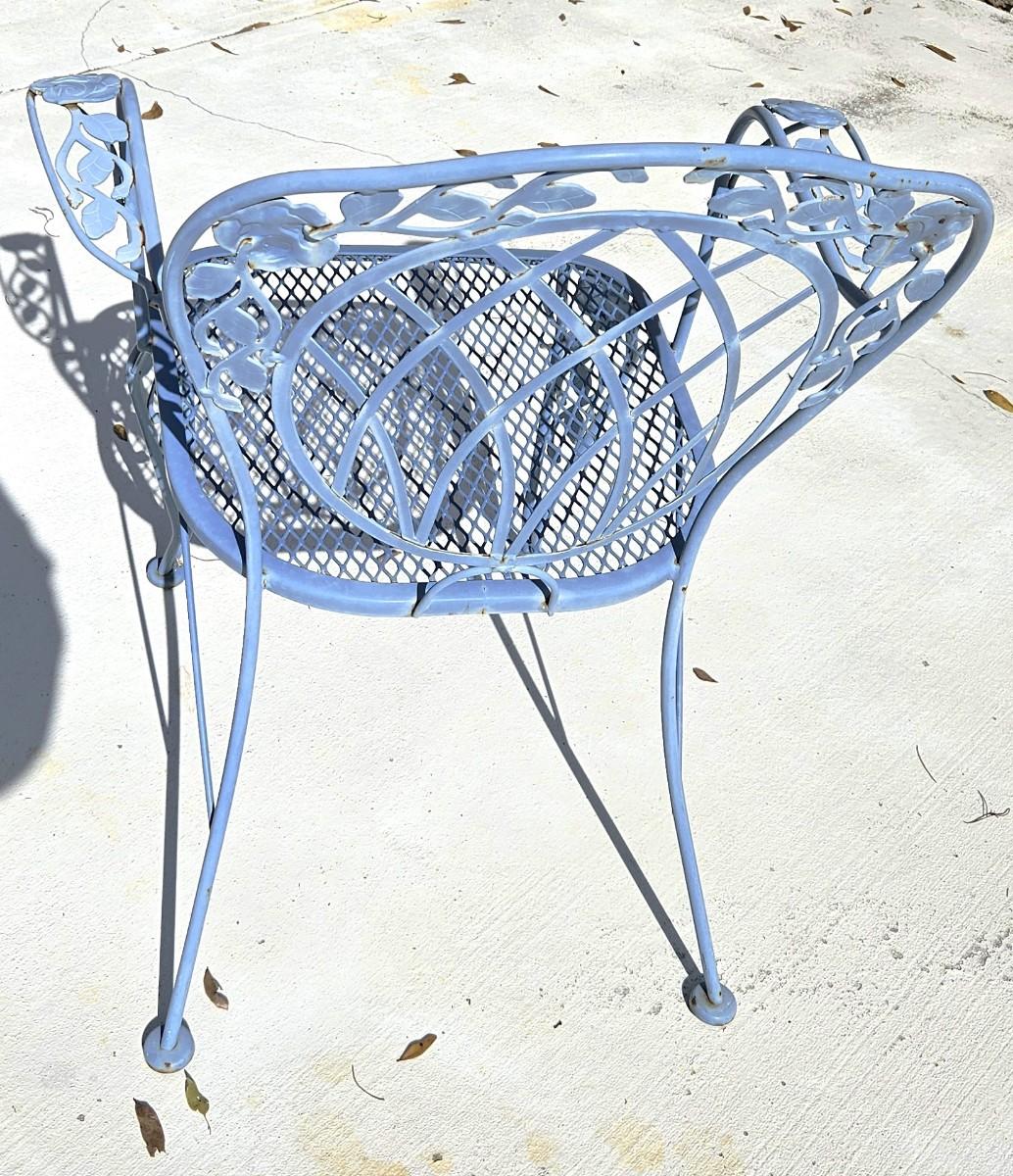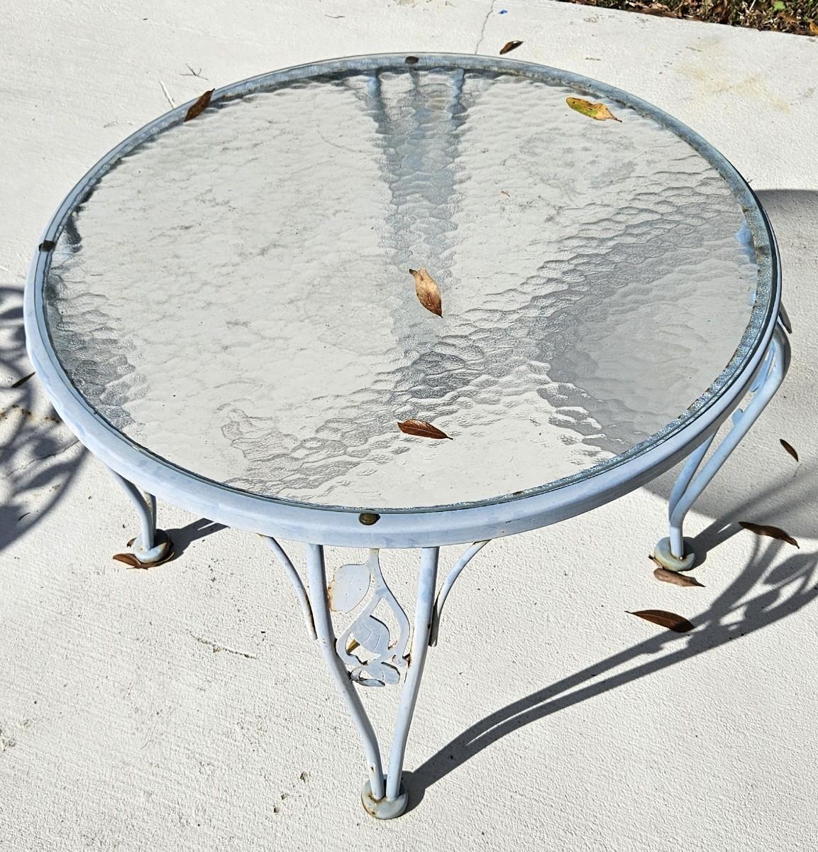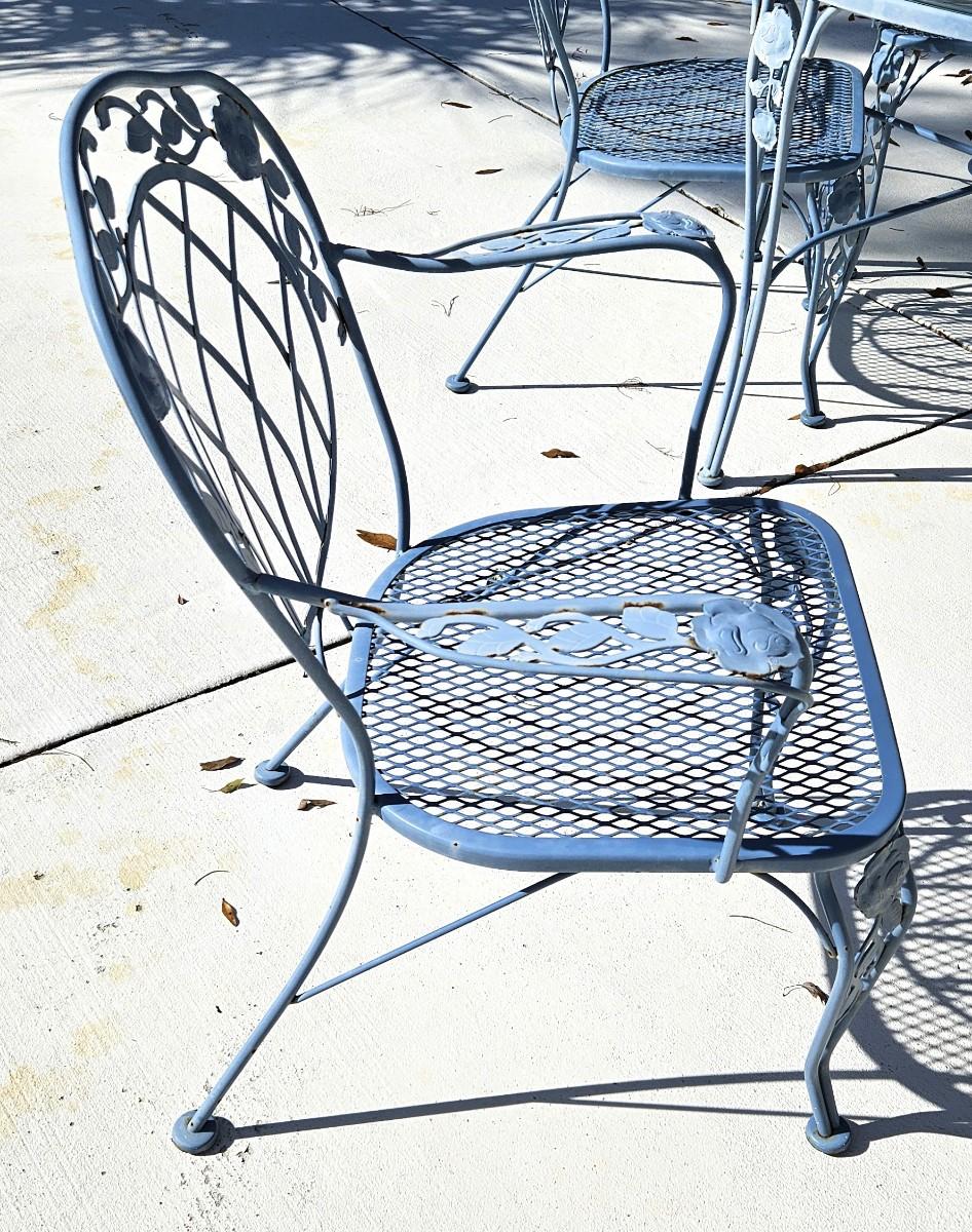 Blue Wrought Iron Table with Glass Top and Chair Set with Additional Side Table