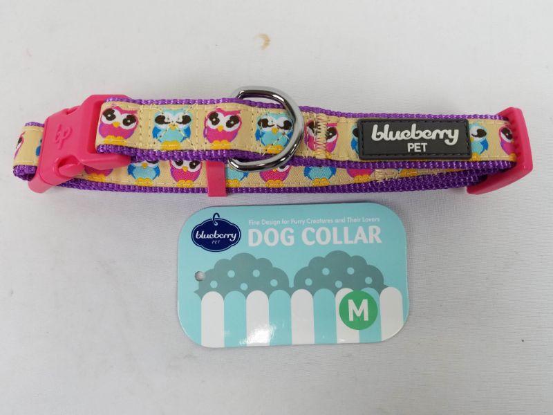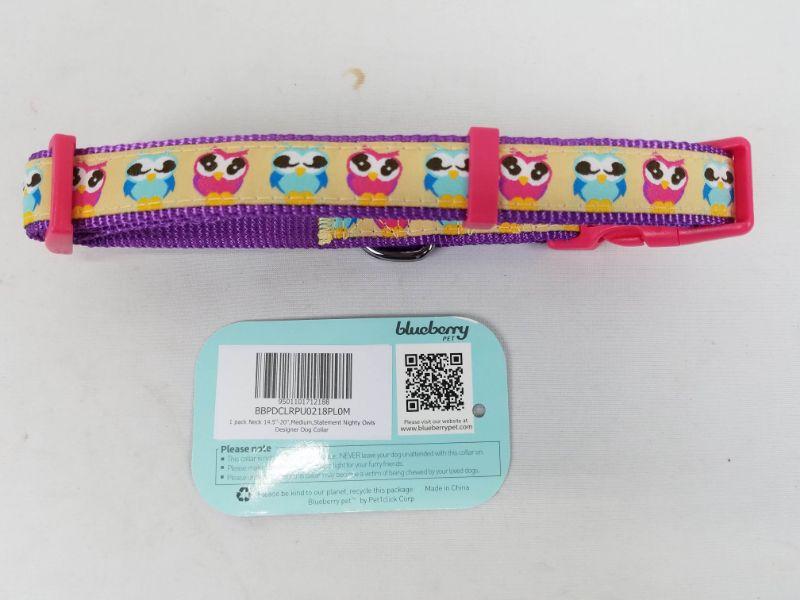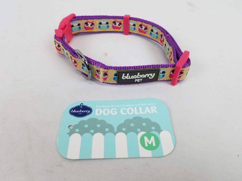 Blueberry Pet Dog Collar with Owl Design, Size Medium 14.5" - 20" - New