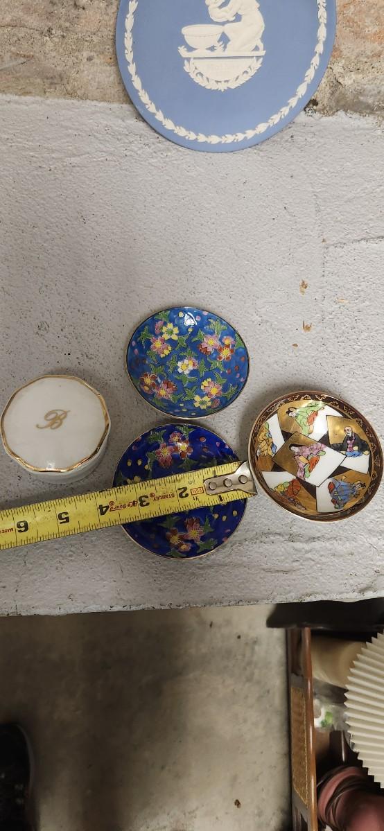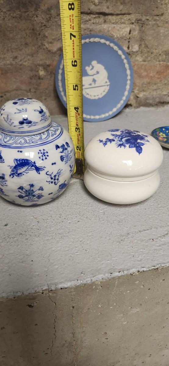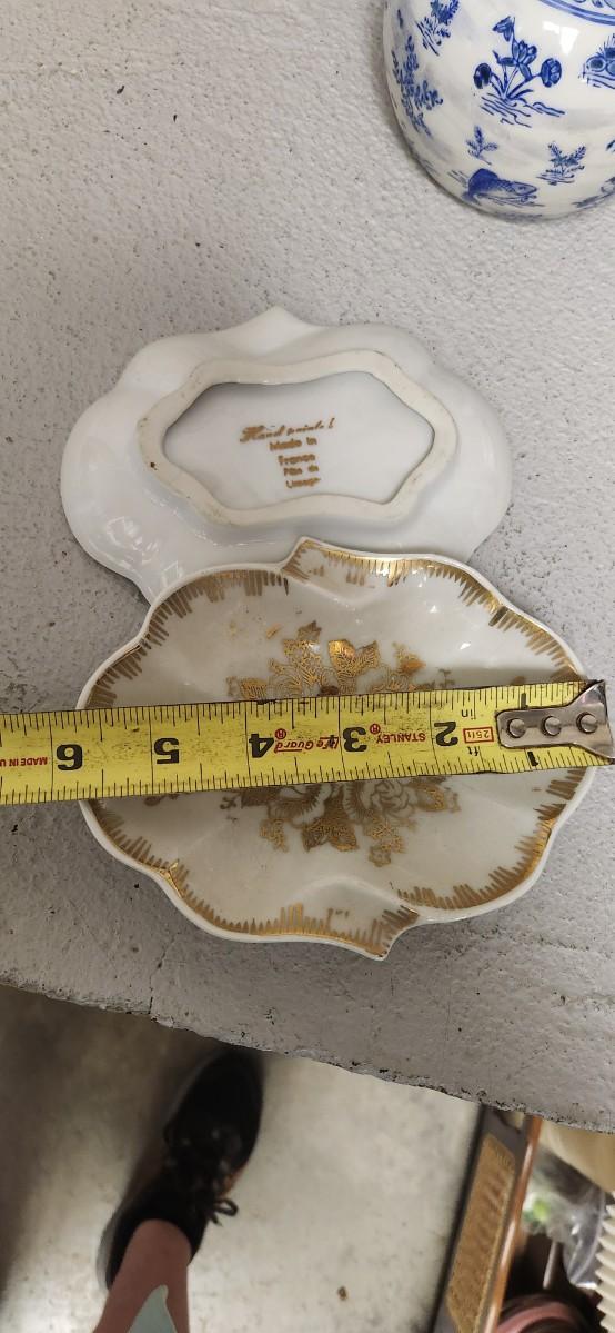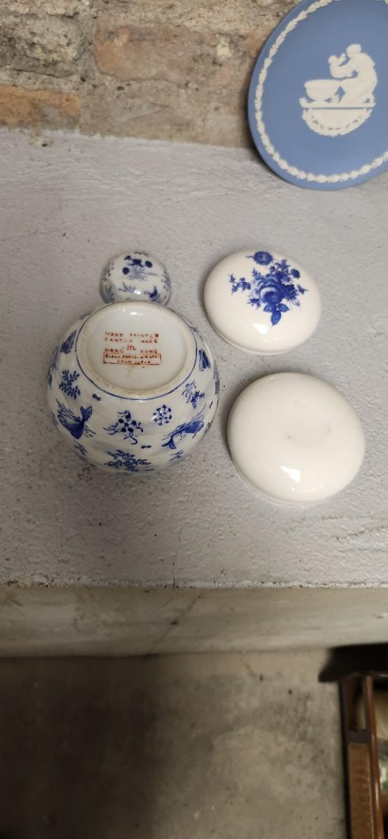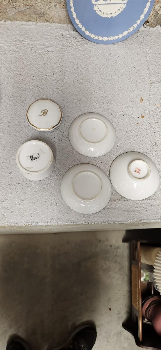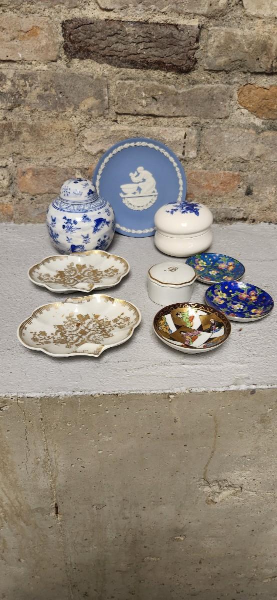 Wedgewood 1973 Mother's Day, small ginger jar is cracked but repaired, that guilded plate is really neat and a pair of Limoges trinkets.