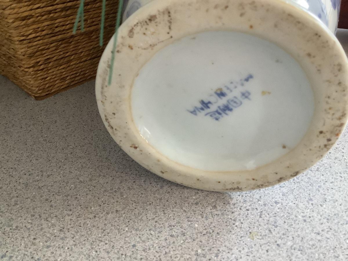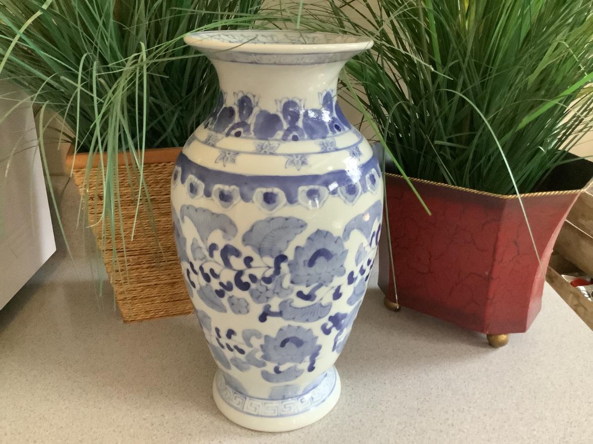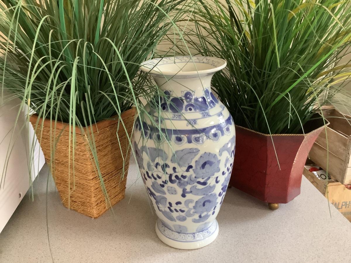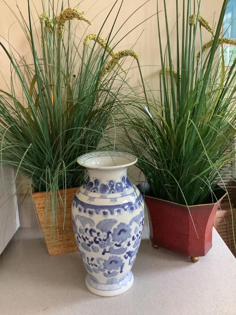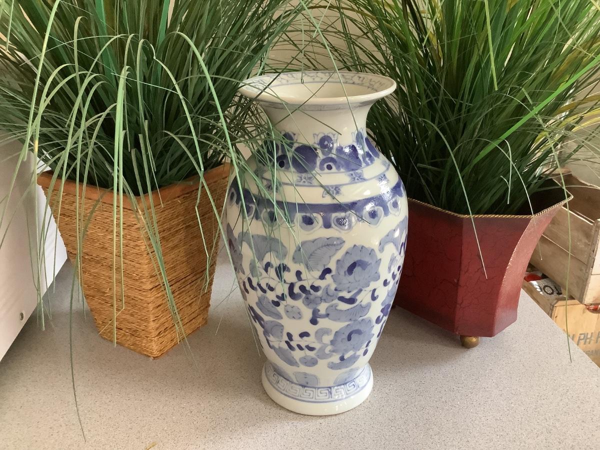Lot Blue/white vase with red and wrapped planters