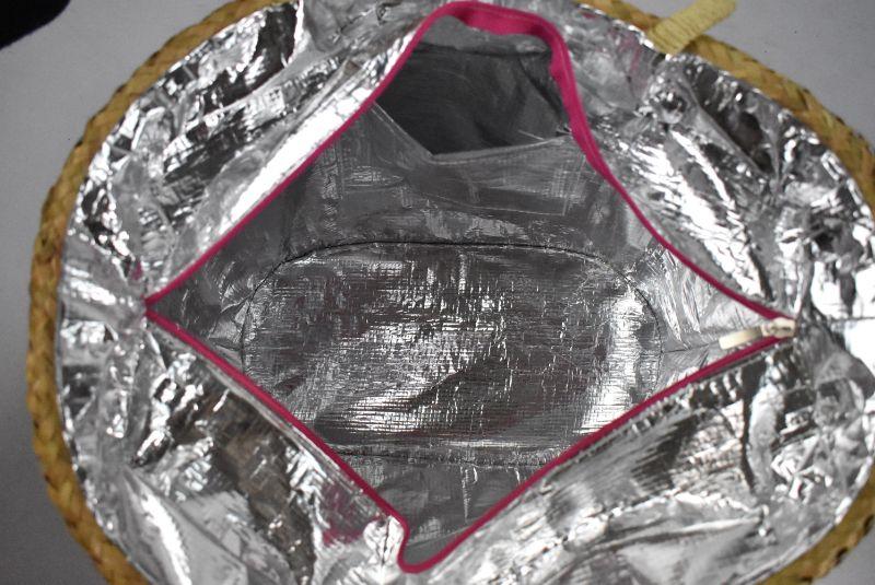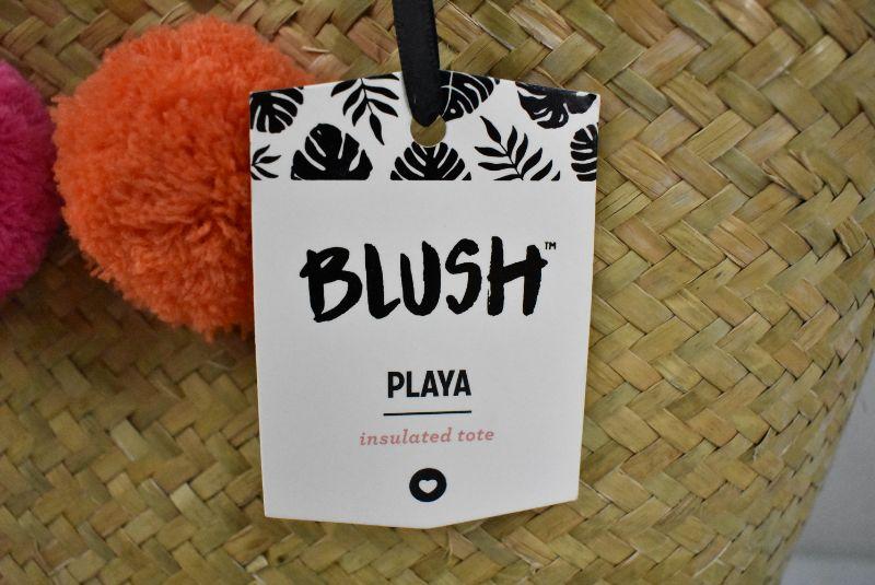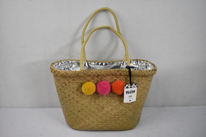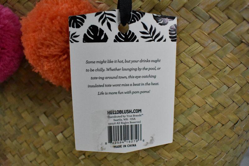 Blush Playa Insulated Tote, Wicker Outside Look with Pom-Poms - New