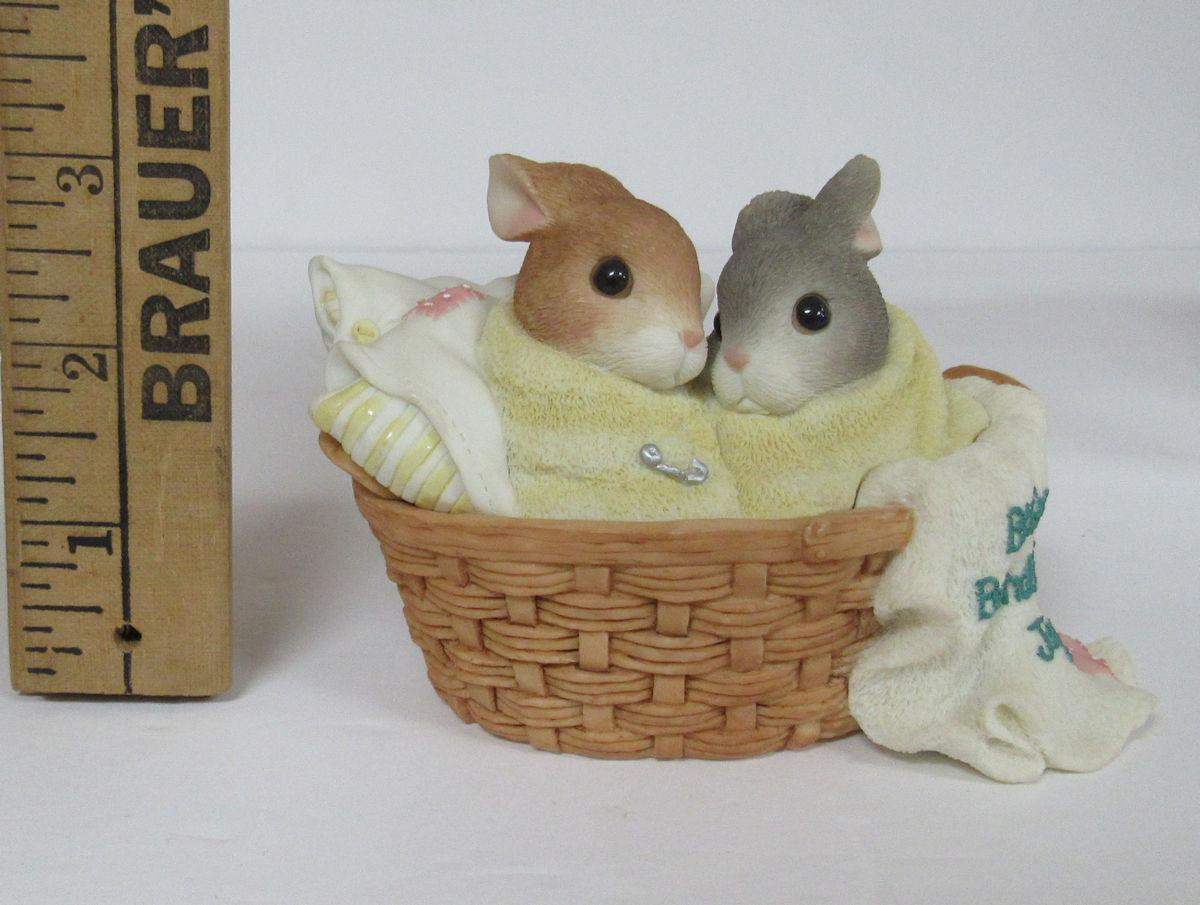 Blushing Bunnies "Twins in Laundry Basket" Enesco