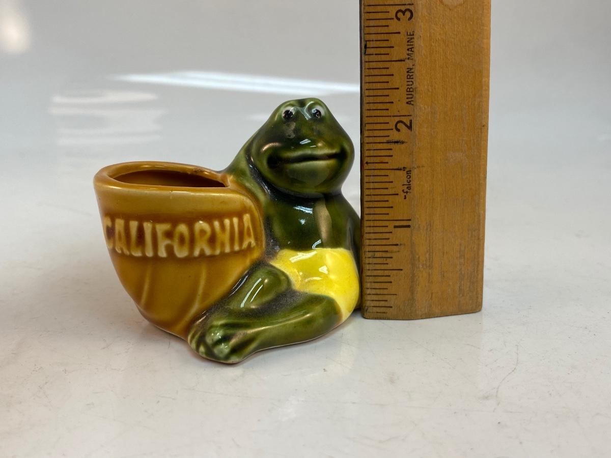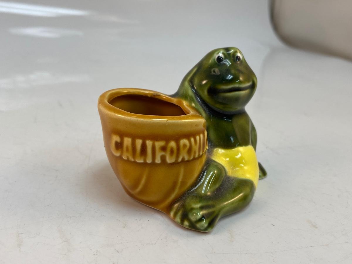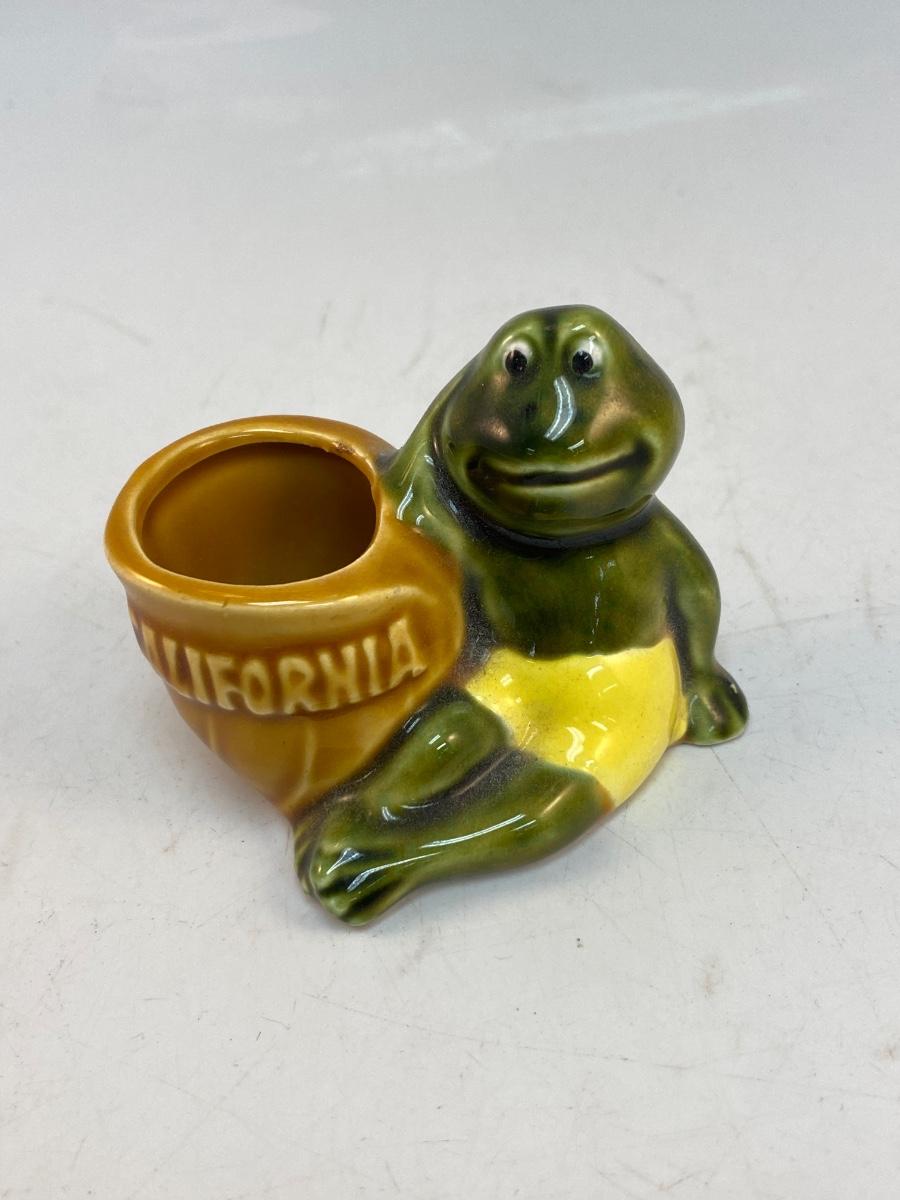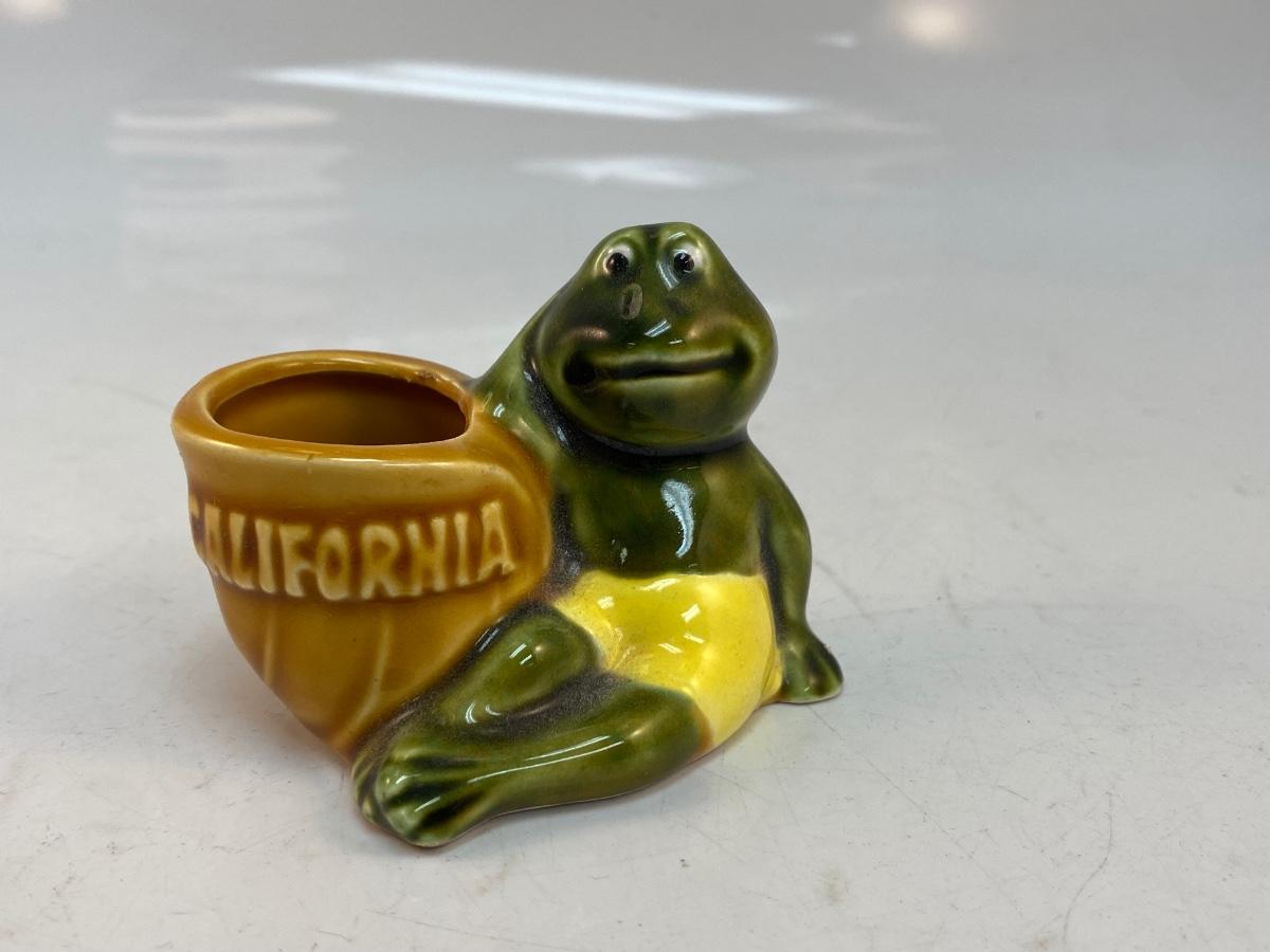 Vintage Sunbathing Frog Toad California Vacation Souvenir Ceramic Figurine. In good condition. About 3" size.