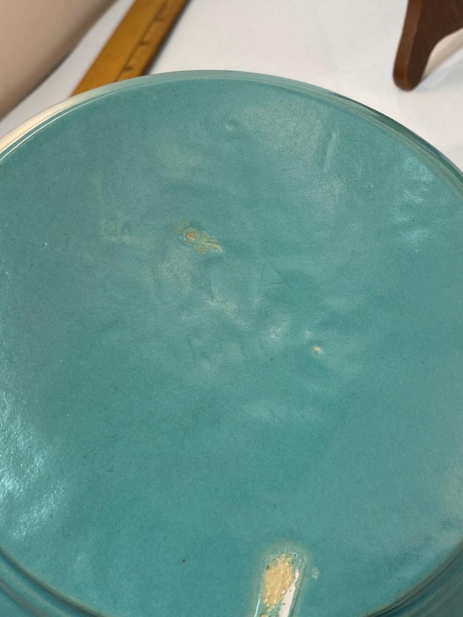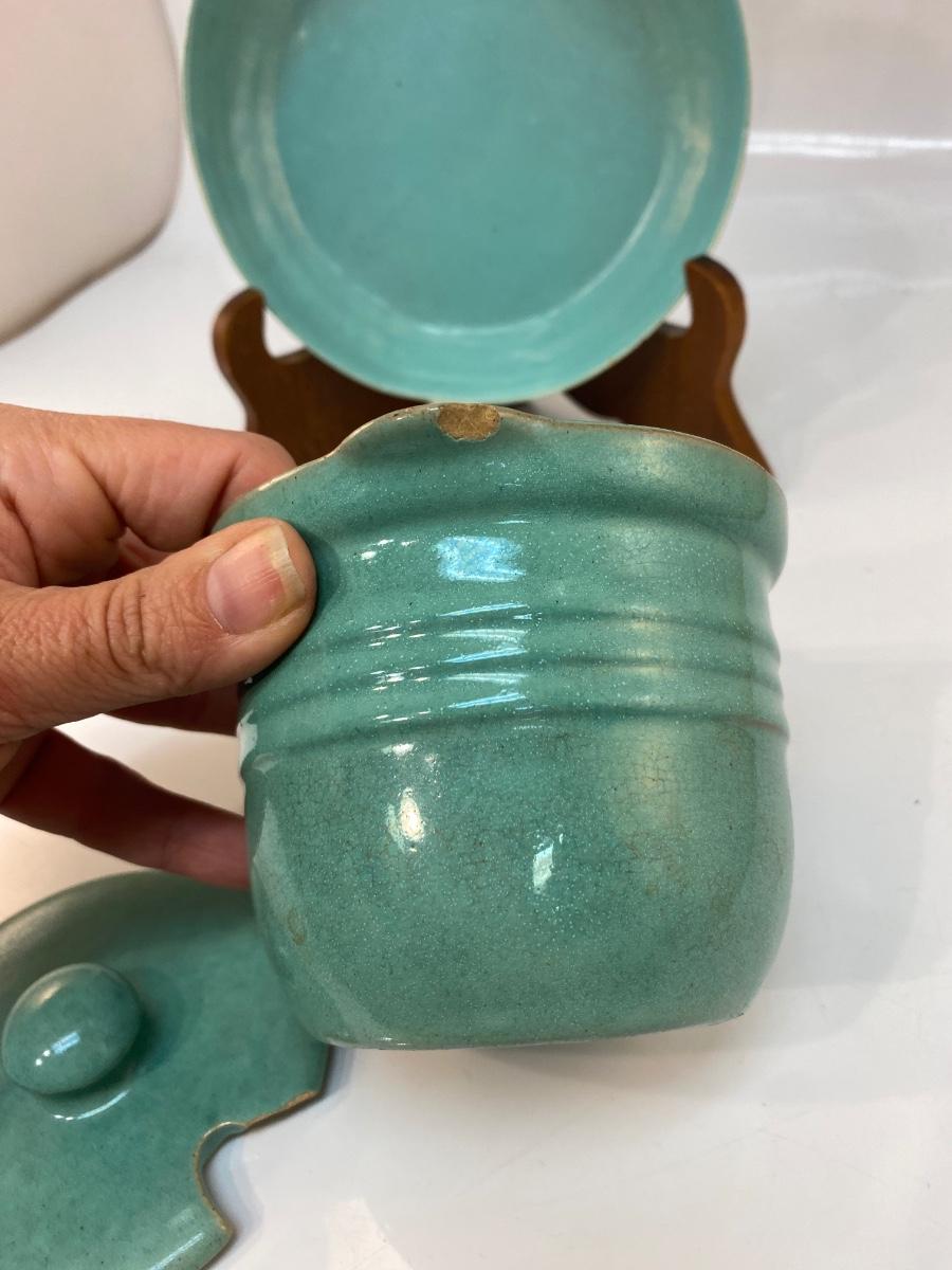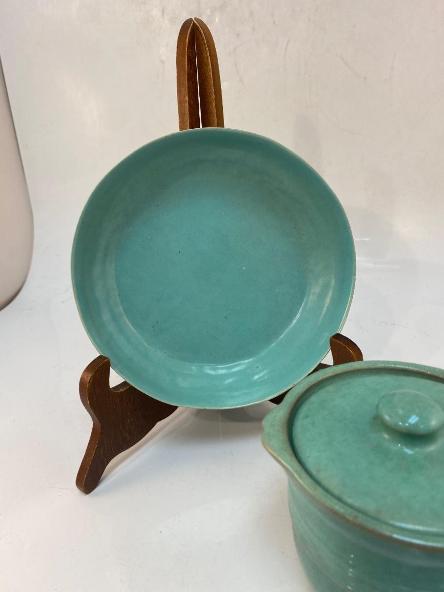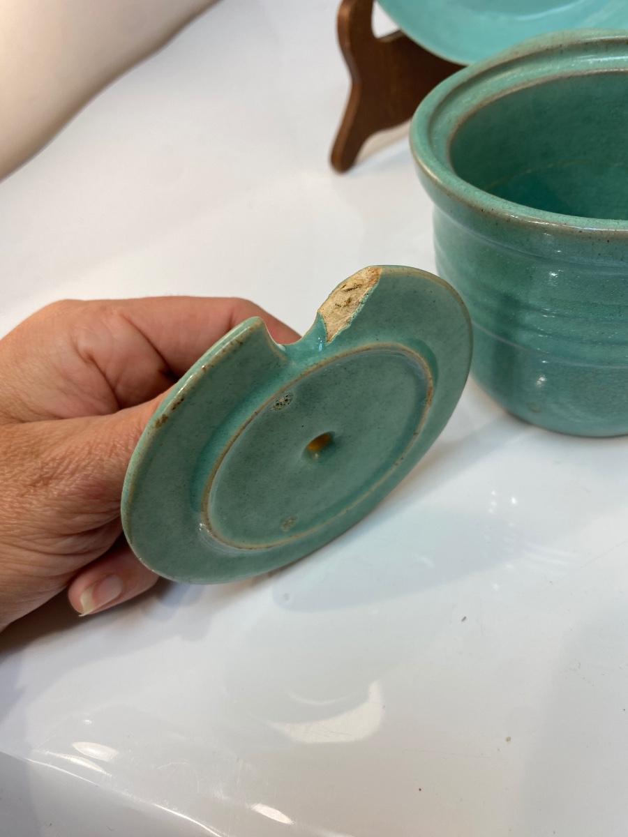 Vintage Turquoise Pottery Crock and Shallow Plate Bowl