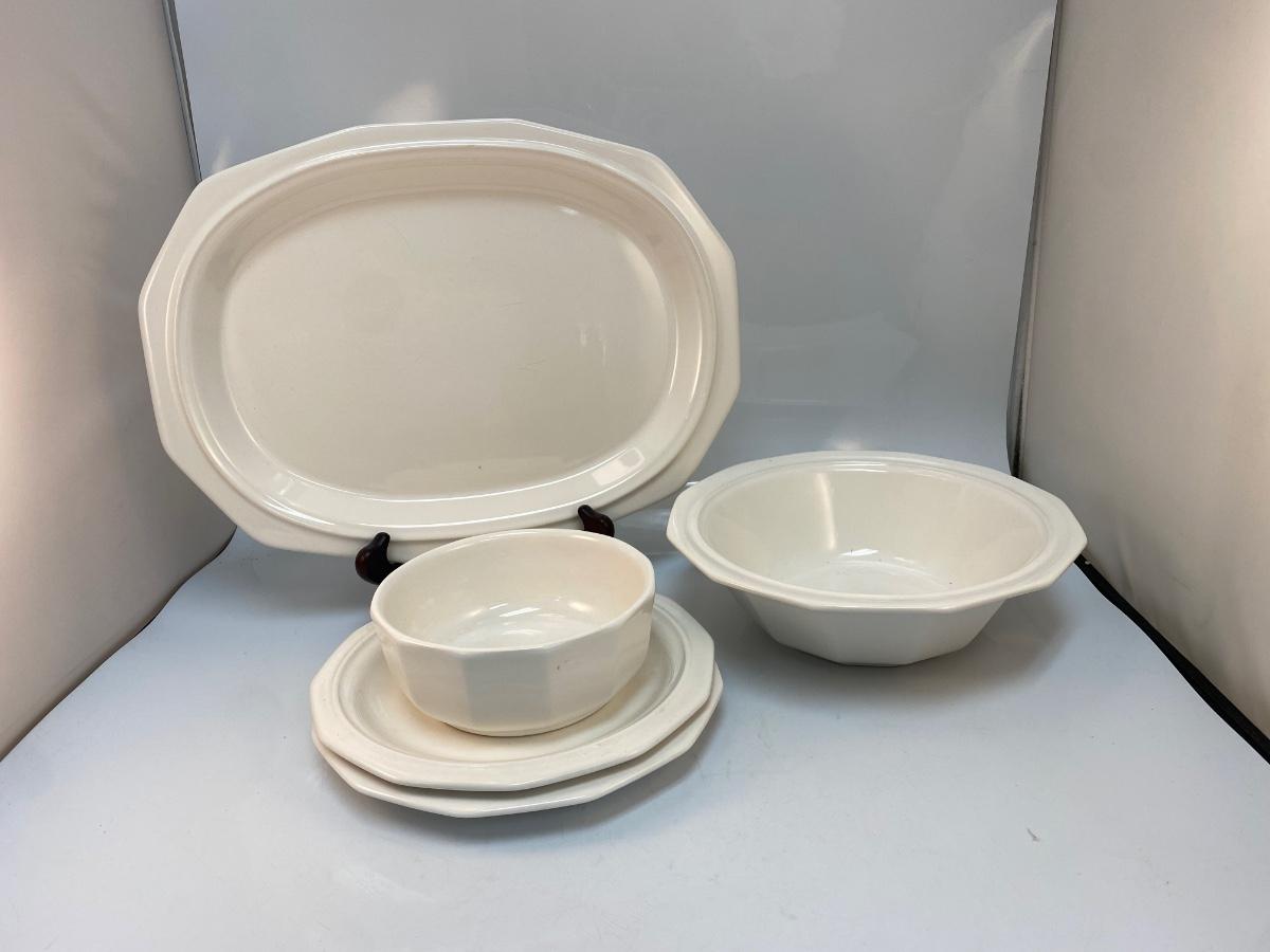 Mixed Lot of Pfaltzgraff Heritage Octagon Shaped Dinnerware Pieces. Platter, serving bowl, 2 bread plates and a cereal bowl. Good conditions, no chips.