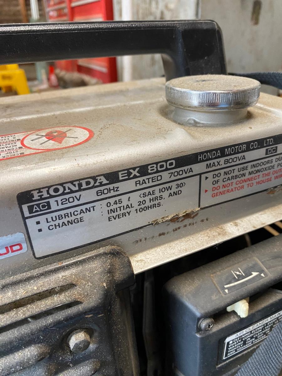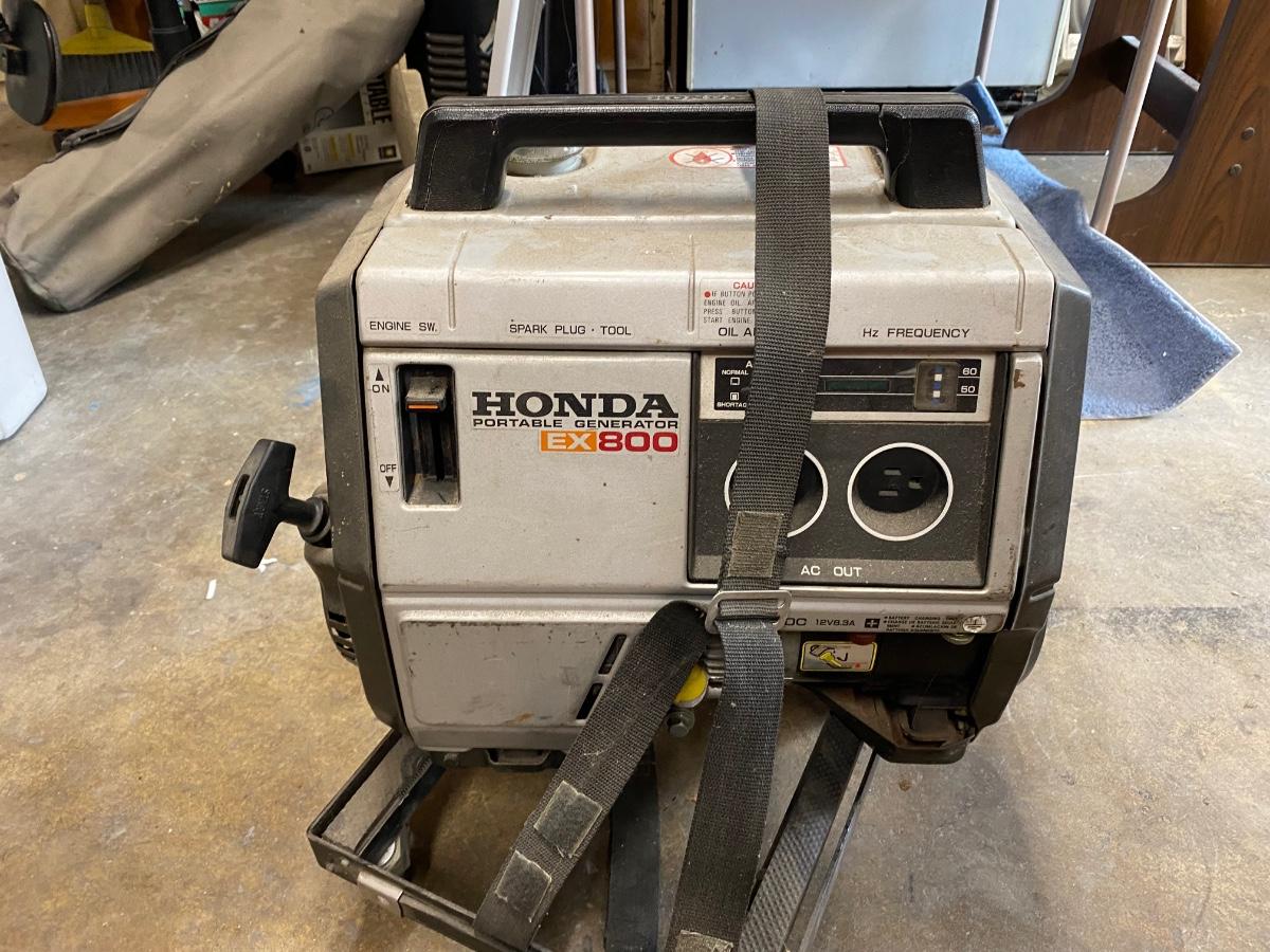Small Honda EX 800 Portable Generator. In good used condition. Has fuel in it, tried to get started but it would not turn over. May need to be serviced. PICK UP IN CYPRESS 6/3.