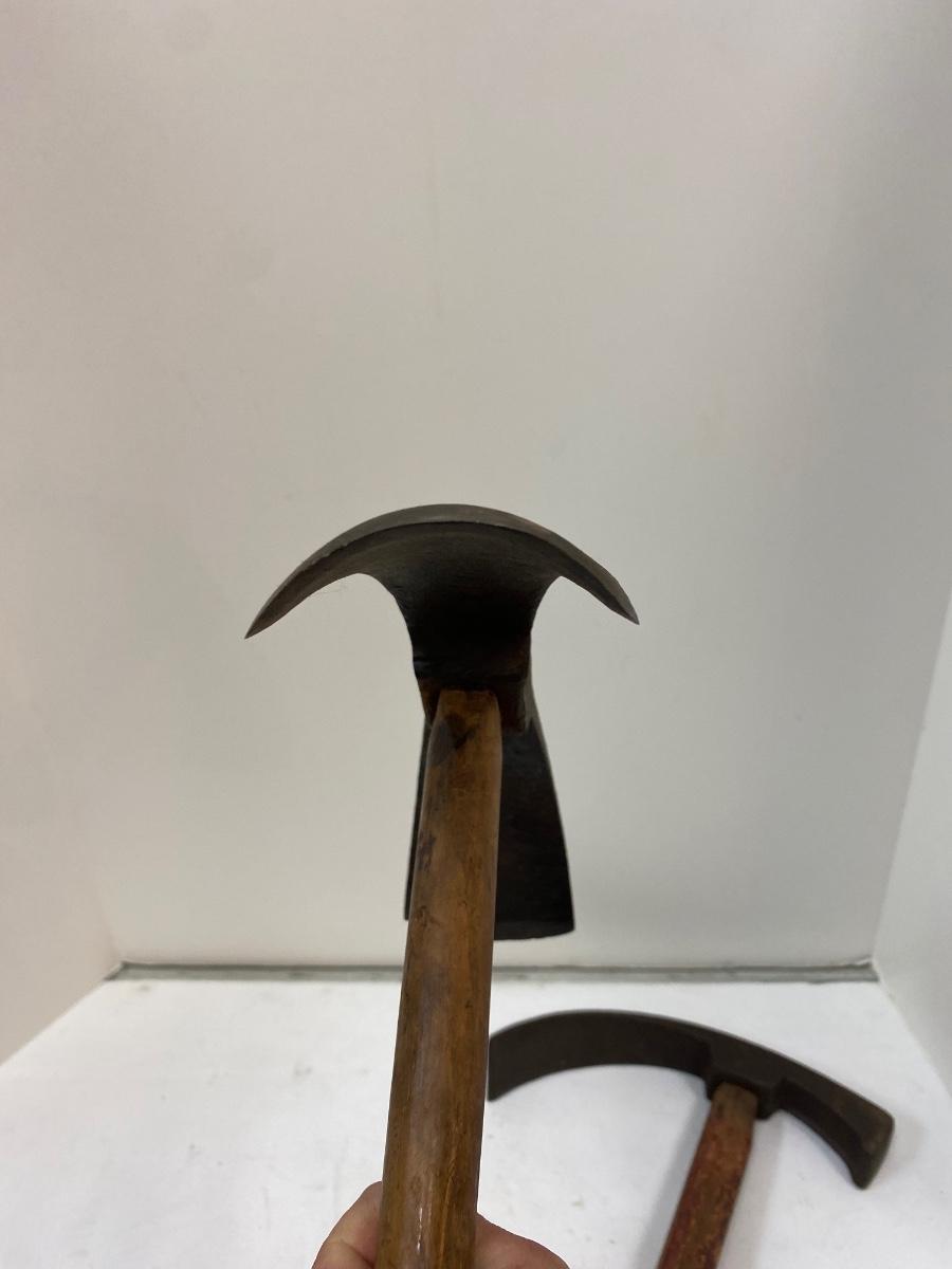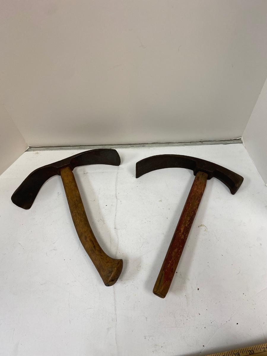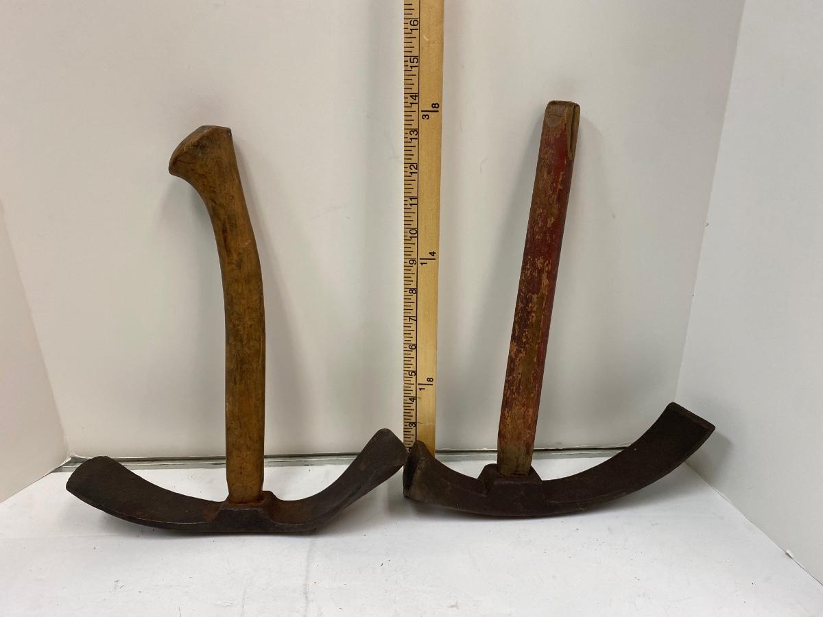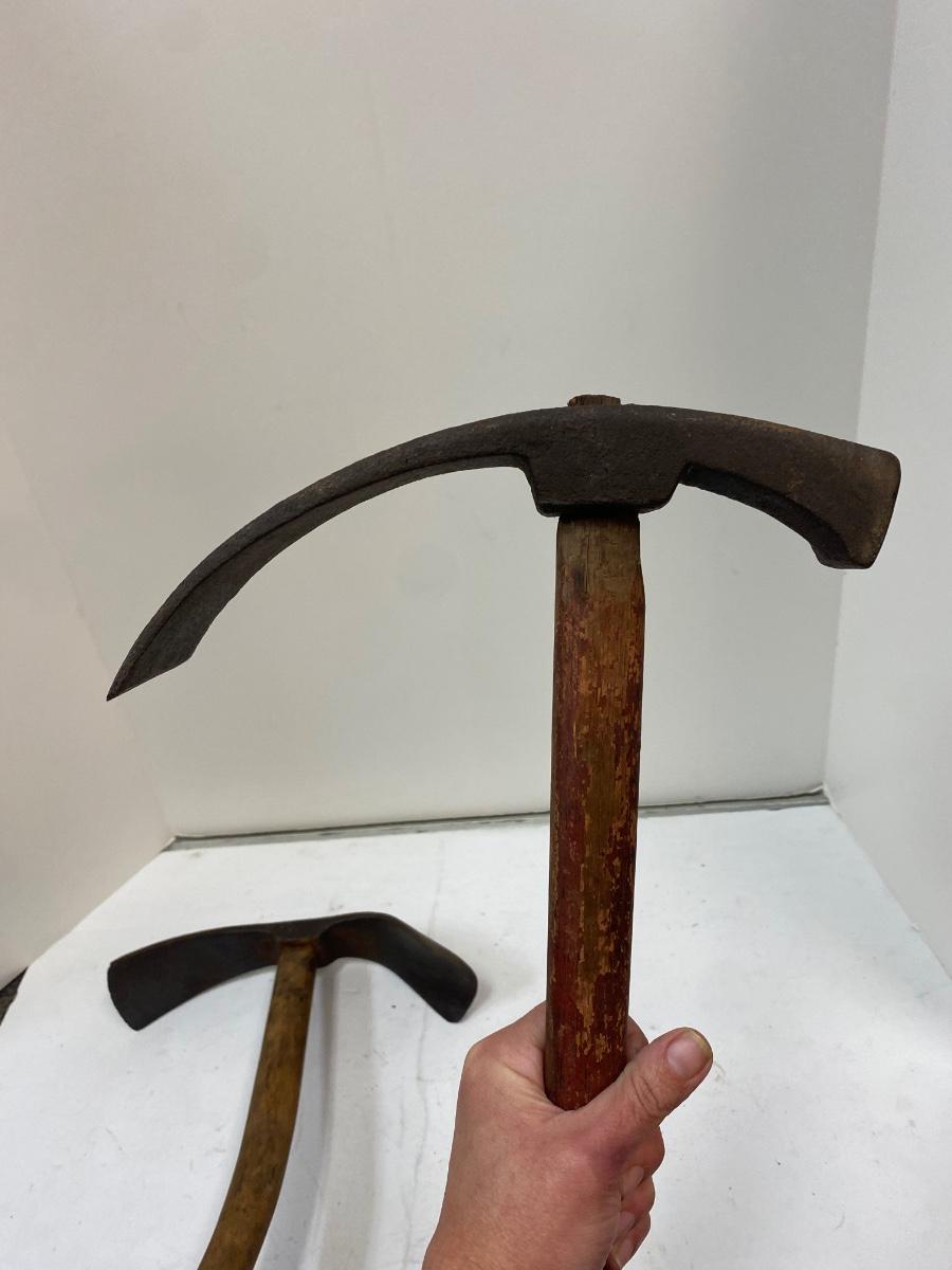 Pair of Antique Short Handle Primitive Adze Curved Boat Bowl Cask Maker Carving Tool. Both are in good condition for their age. 14" length.