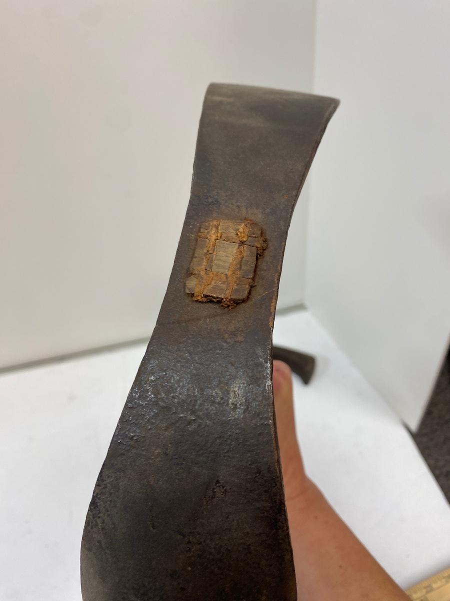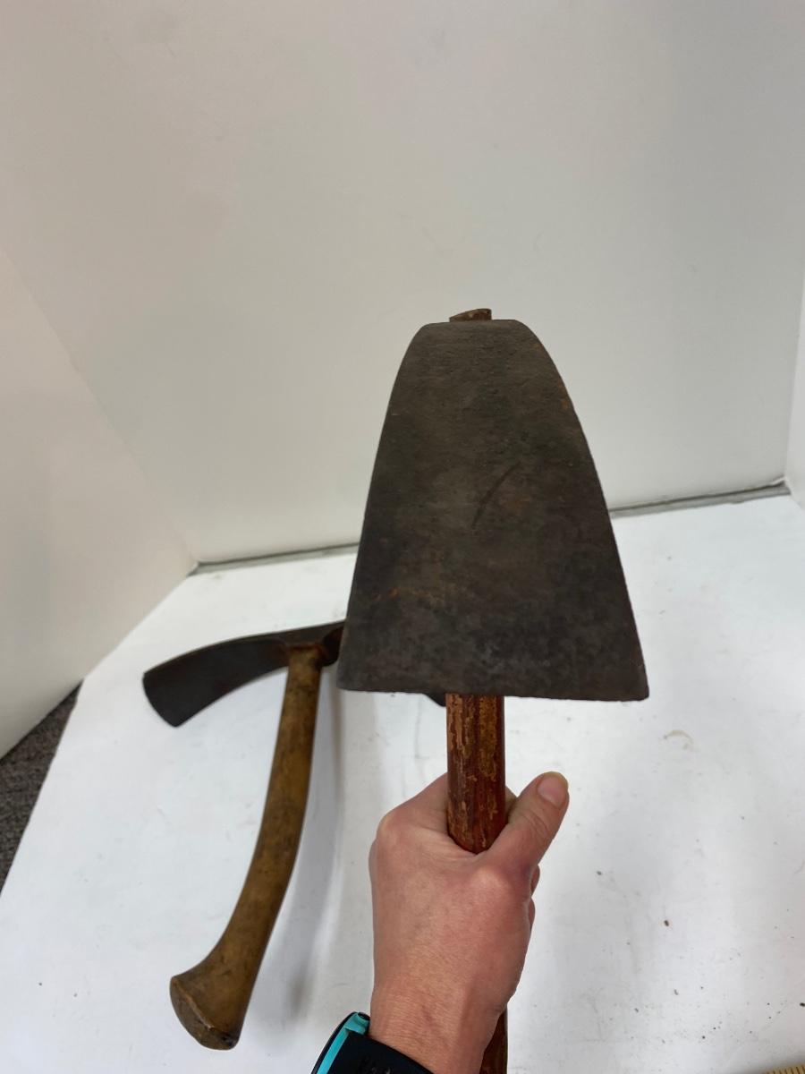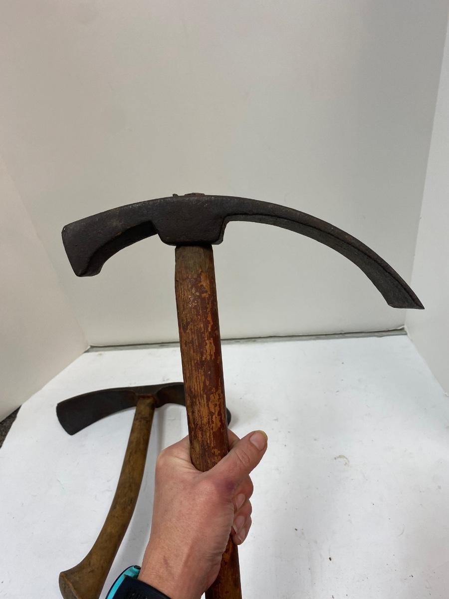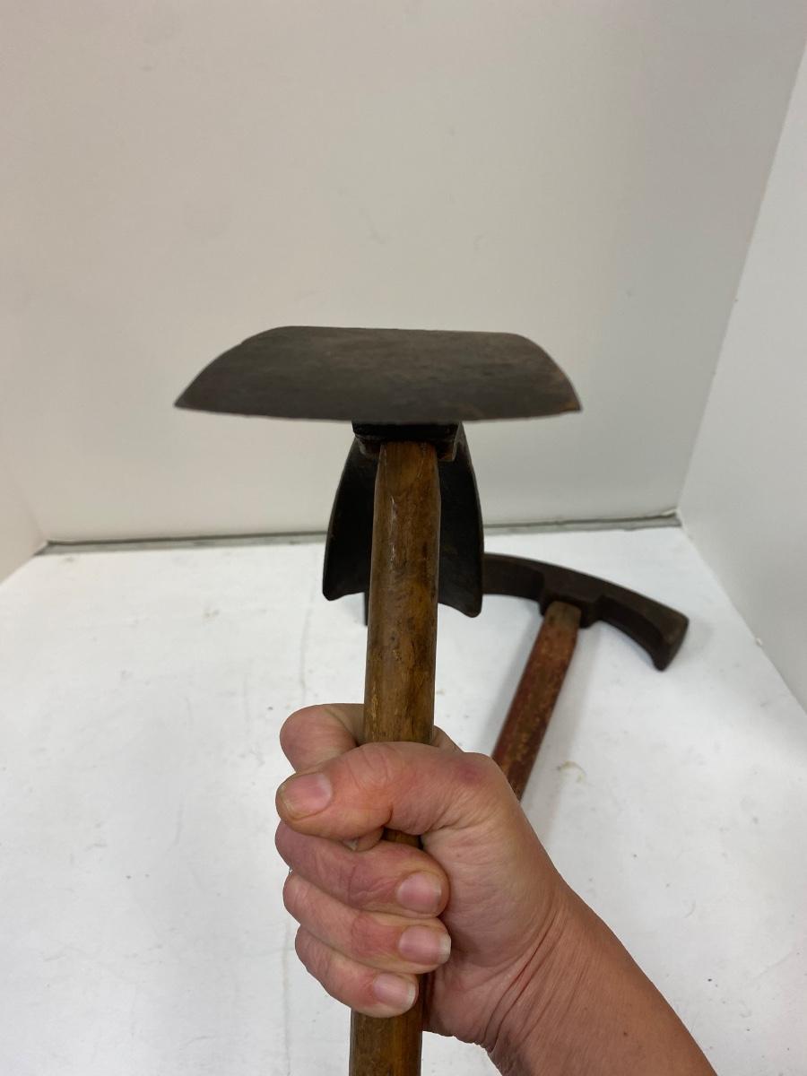 Pair of Antique Short Handle Primitive Adze Curved Boat Bowl Cask Maker Carving Tool. Both are in good condition for their age. 14" length.