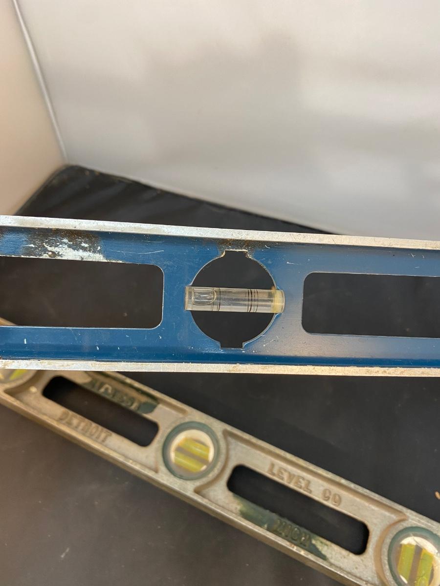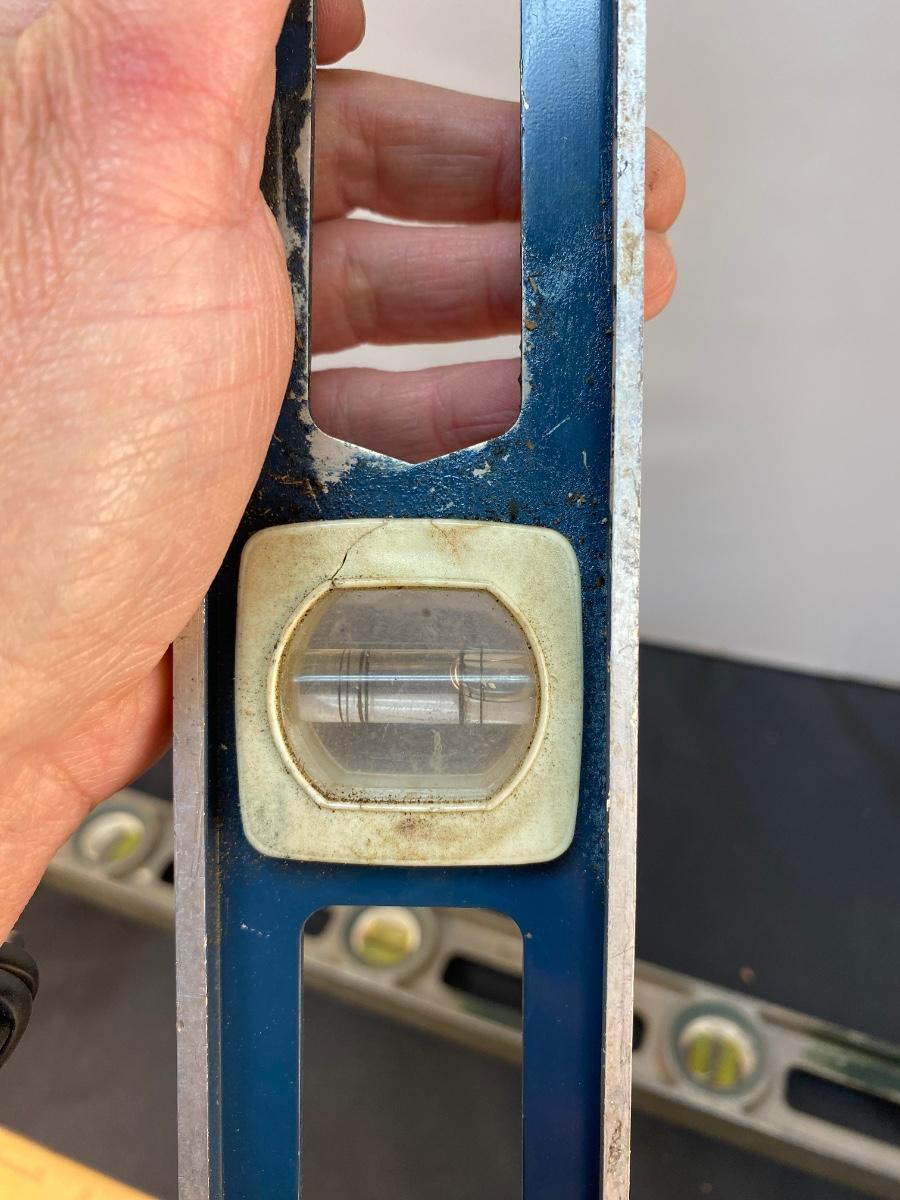 Pair of 24" Metal Levels. In used condition. Both have slight damage but are useable.